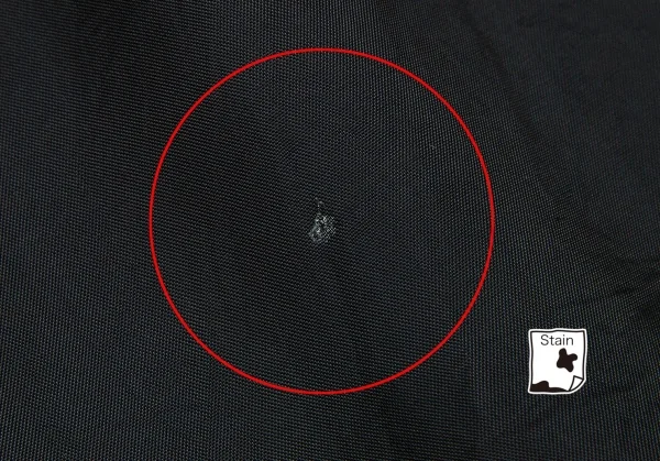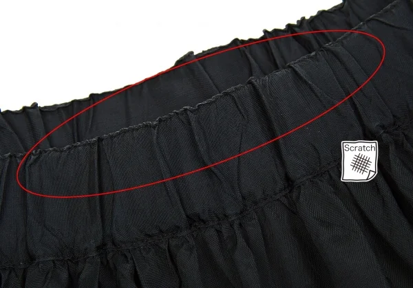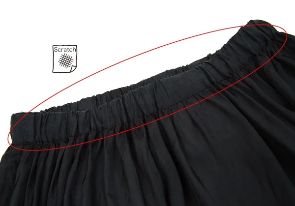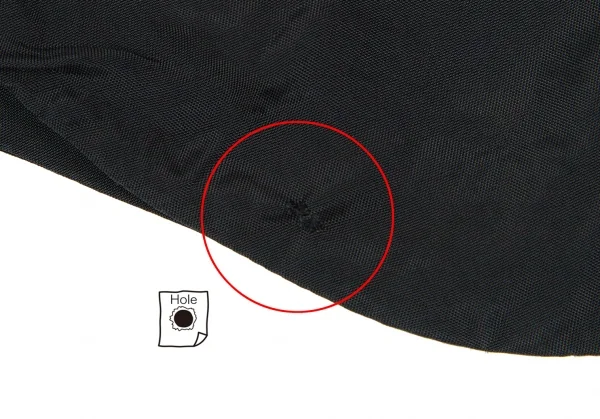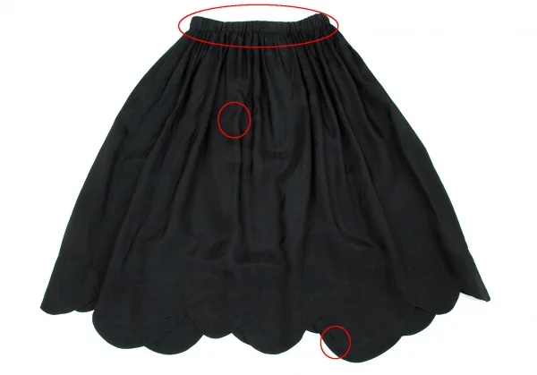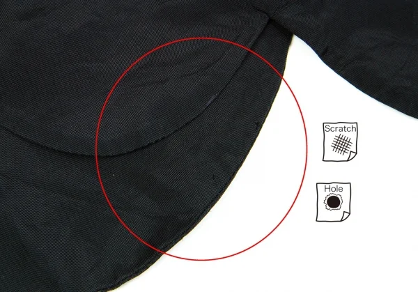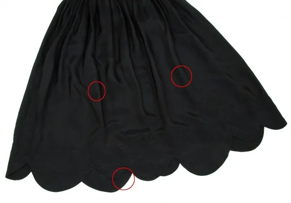 ウエスト・裾にスレ、前身頃に薄シミ、後ろ身頃・裾に小穴があります(画像参照)。クリーニング済み