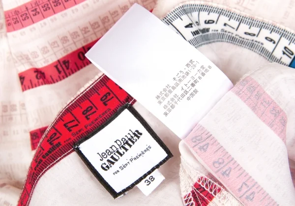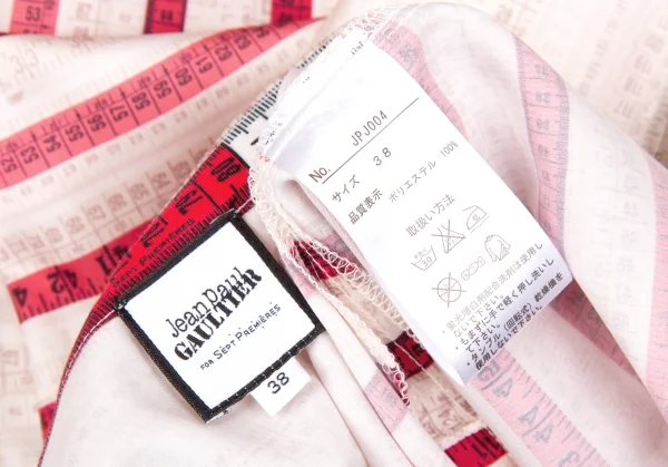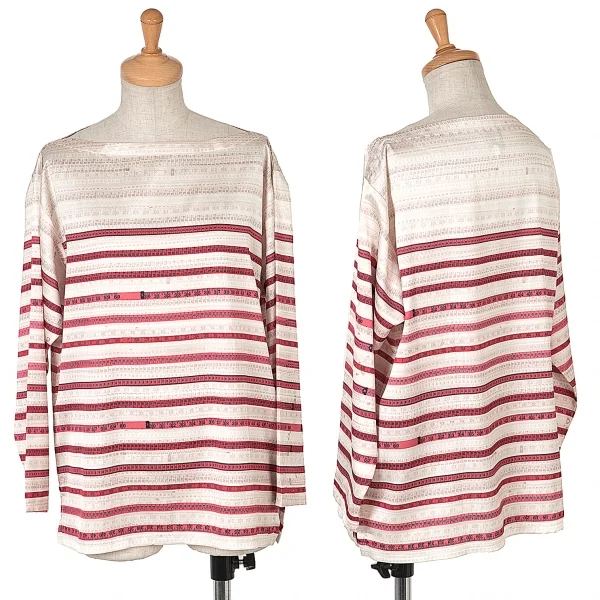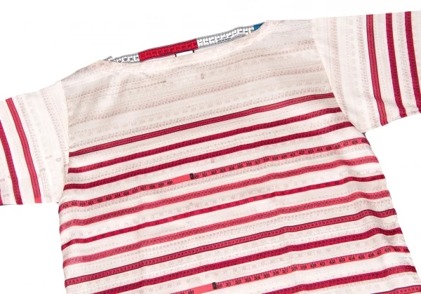 ジャンポールゴルチエ フォー セットプルミエJean Paul GAULTIER FOR SEPT PREMIERES メジャー柄ボートネックトップス ベージュ赤38
