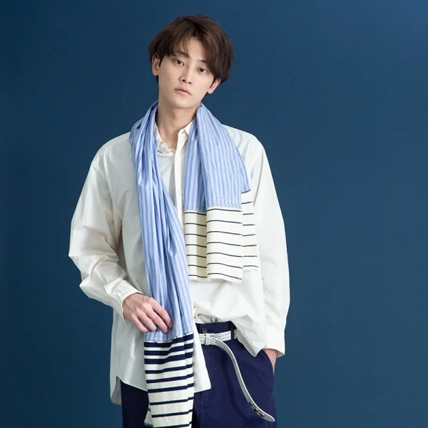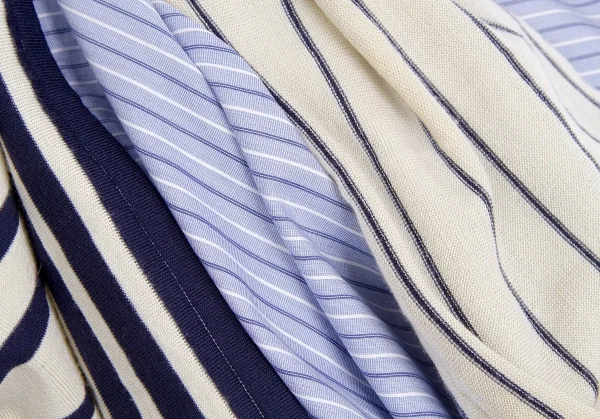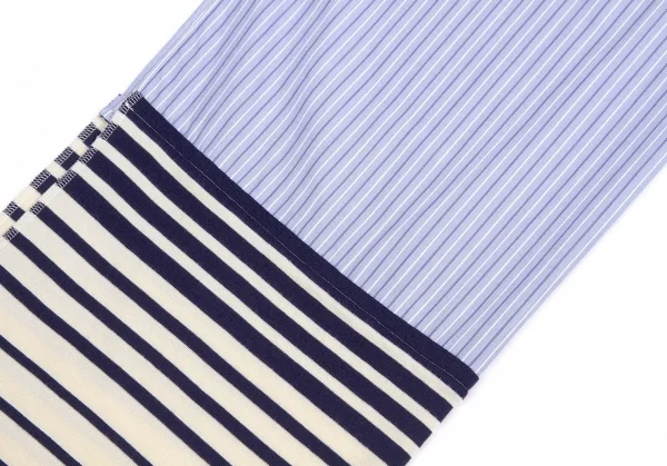 【SALE】コムデギャルソン シャツCOMME des GARCONS SHIRT ボーダーニット切替ストライプシャツ地ストール 水色クリーム