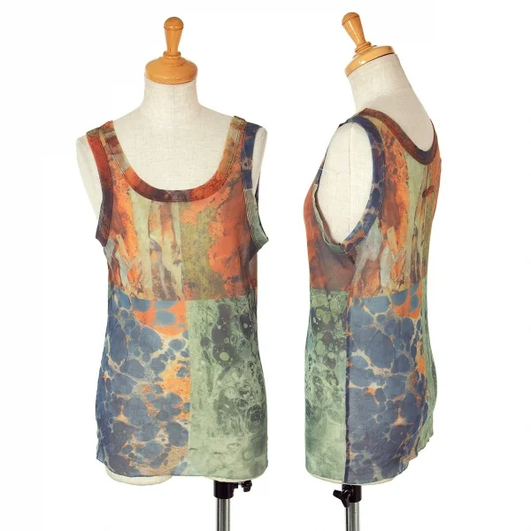 ジャンポールゴルチエJean Paul GAULTIER ネイチャープリントパワーネットタンクトップ オレンジマルチM位