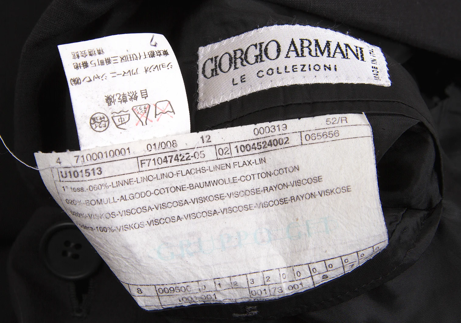 【SALE】ジョルジオ アルマーニGIORGIO ARMANI ウールコットン3Bテーラードジャケット 墨黒52