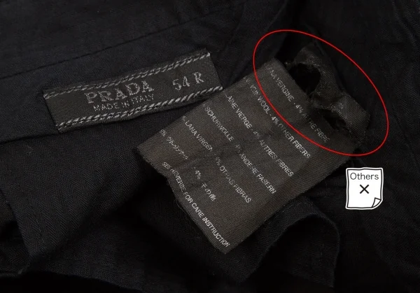 ウエスト裏にスレ、品質タグに劣化による破れがあります(画像参照)。目立ったシミ、汚れ、ほつれ等なくいい状態です。クリーニング済み