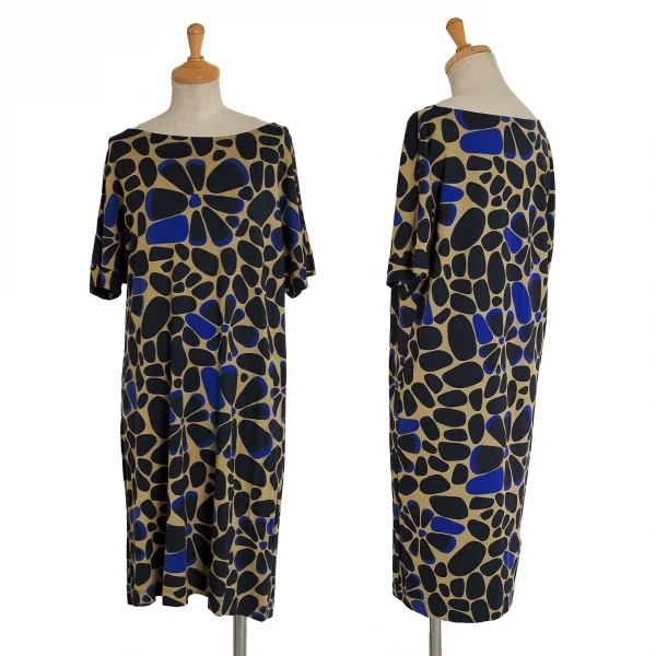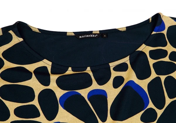 マリメッコmarimekko プリントTシャツワンピース 紺ベージュS