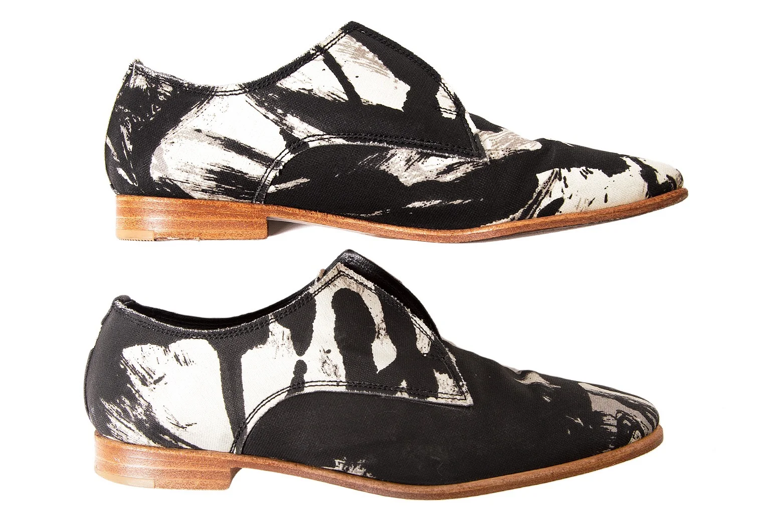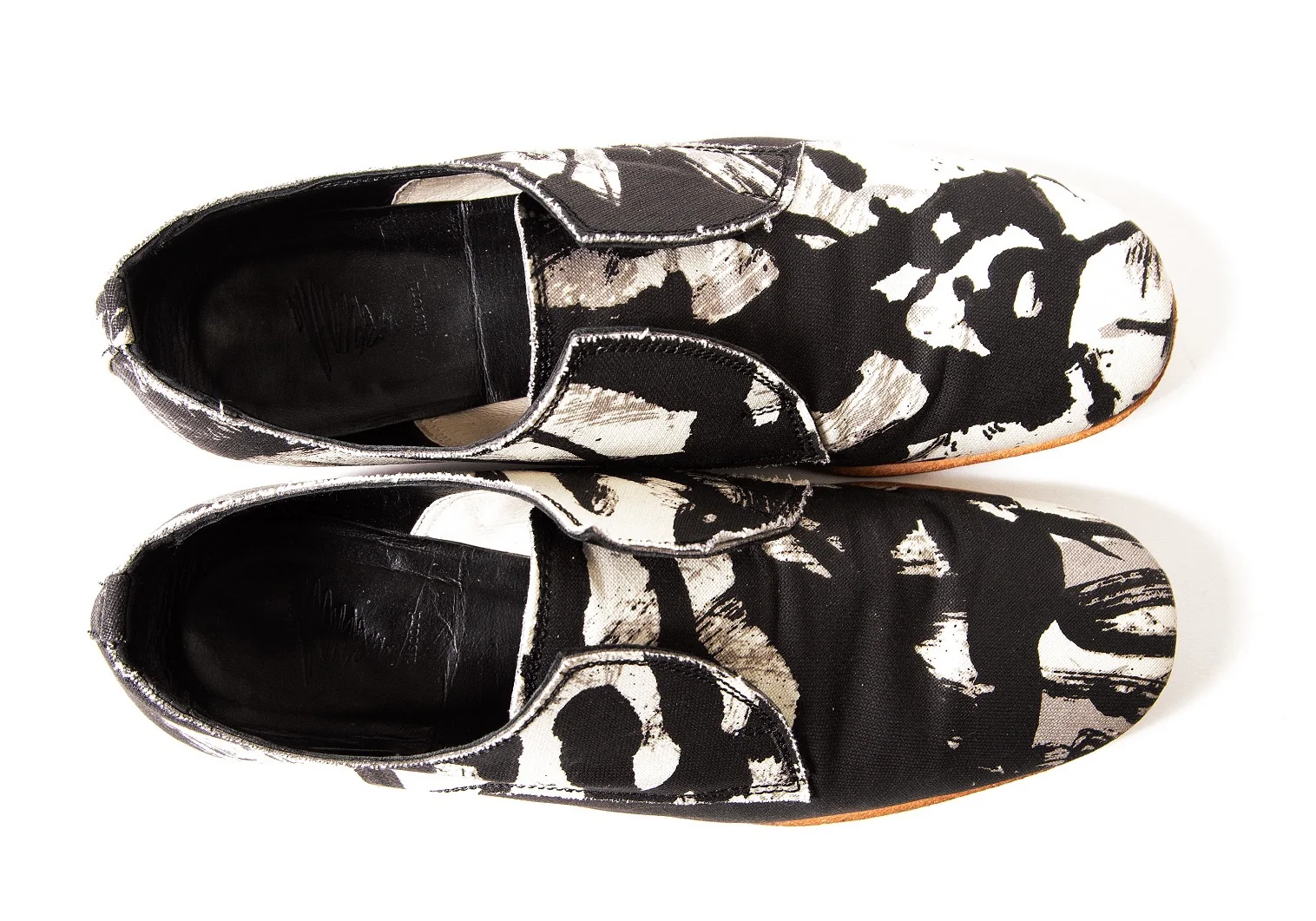 【SALE】ヨウジヤマモトディスコード Yohji yamamoto discord グラフィックキャンバススリッポン 黒白2(22.5位)