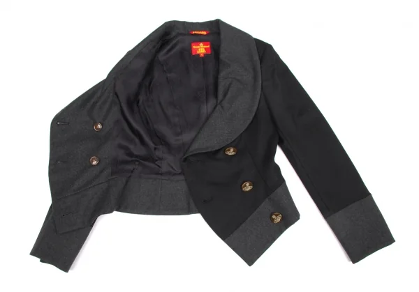 ヴィヴィアンウエストウッド レッドレーベルVivienne Westwood Red Label 切替ヘチマカラージャケット 黒チャコールグレー1