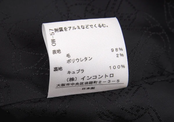 ウール98% ポリウレタン2% 裏地キュプラ100%