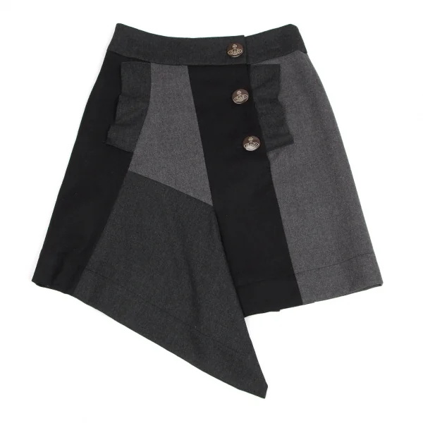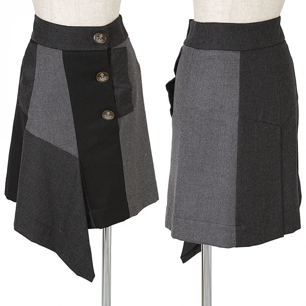 ヴィヴィアンウエストウッド レッドレーベルVivienne Westwood Red Label 切替アシンメトリースカート 黒チャコールグレー1