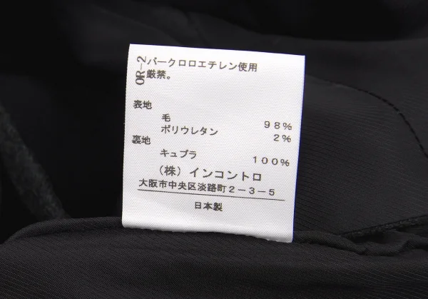 ウール98% ポリウレタン2% 裏地キュプラ100%