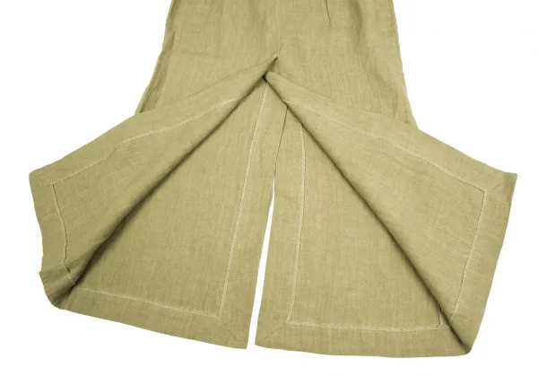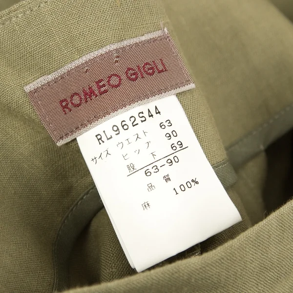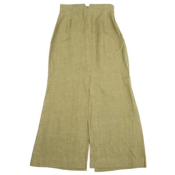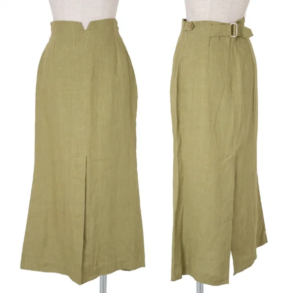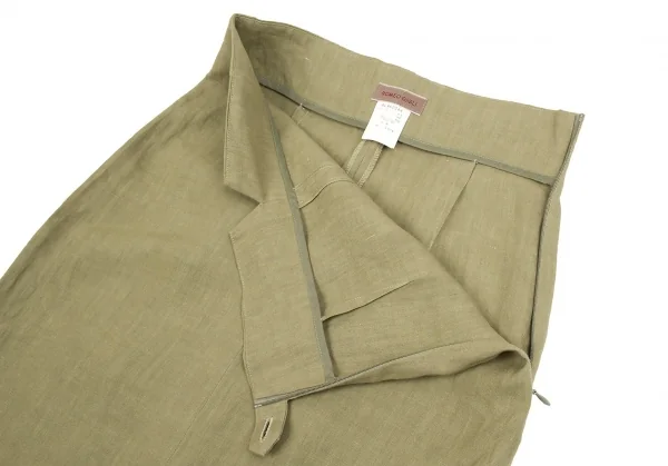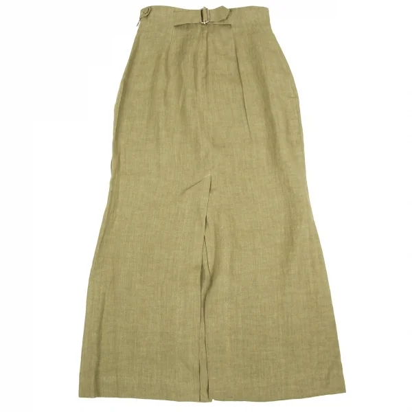 【SALE】ロメオジリROMEO GIGLI バックベルトスリットデザインリネンロングスカート 淡カーキM位