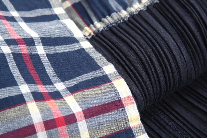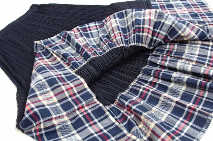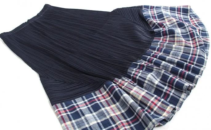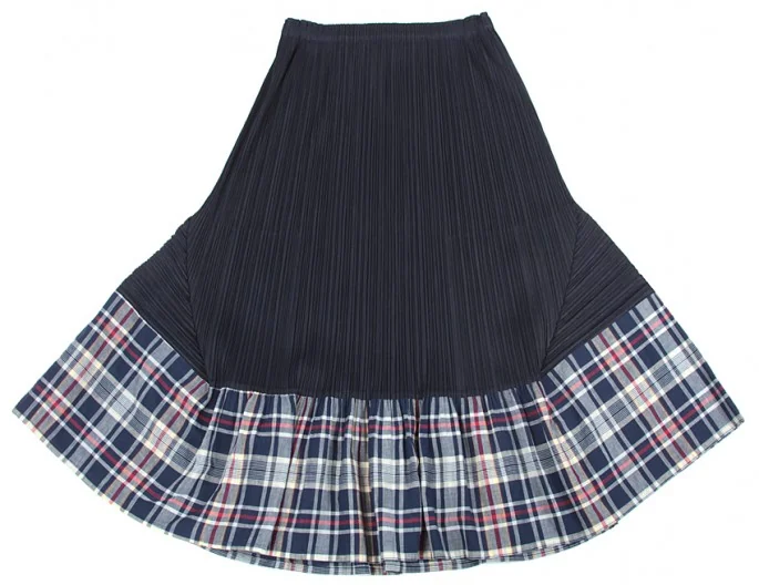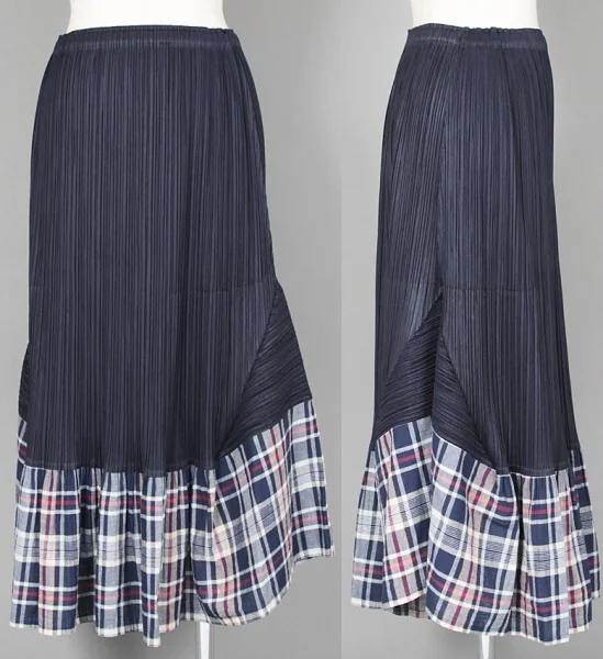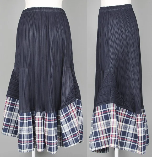プリーツプリーズPLEATS PLEASE 裾チェック切替スカート 紺2