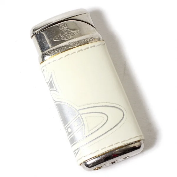 ヴィヴィアンウエストウッドVivienne Westwood オーブレザーコンビガスライター 白シルバー