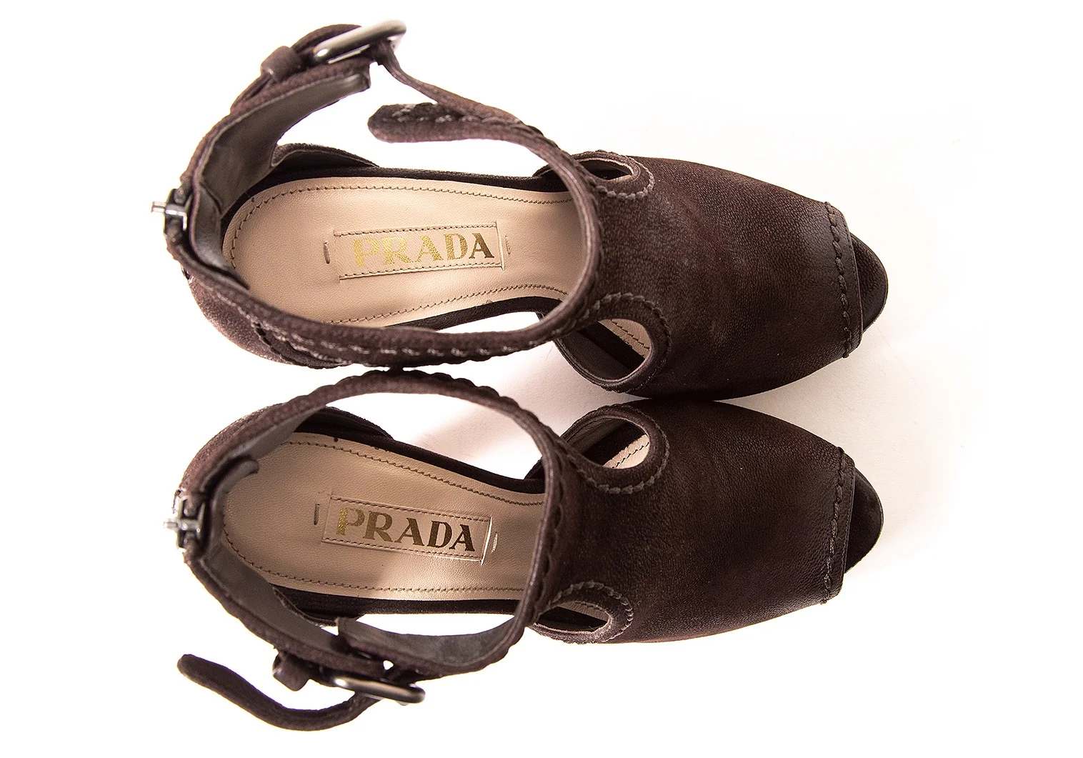 【SALE】プラダPRADA ベルテッドヒールサンダル 濃茶34(22位)