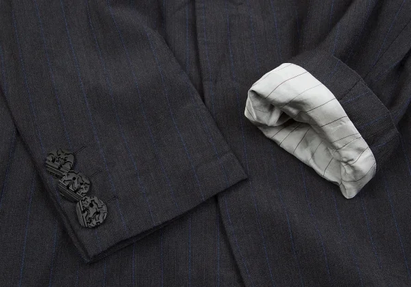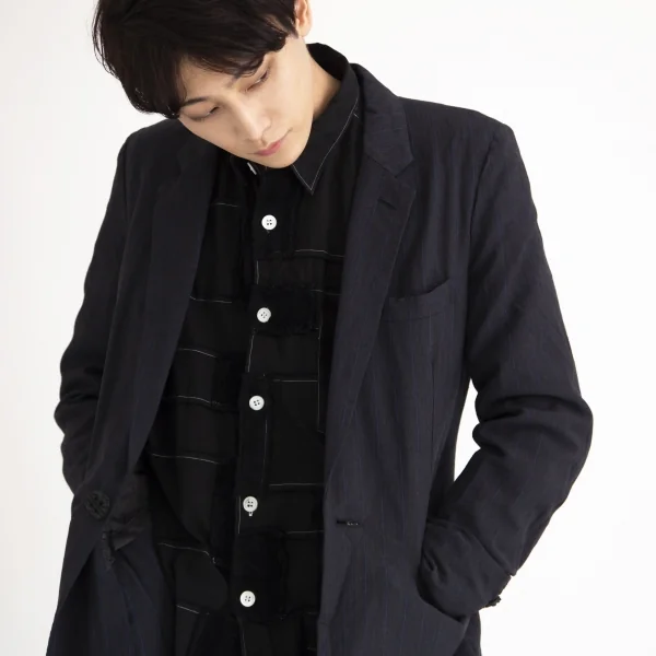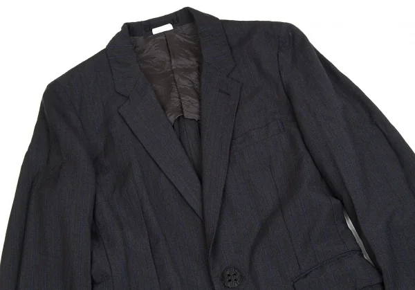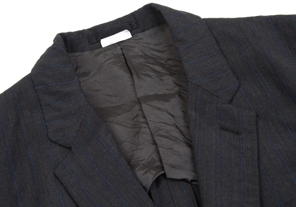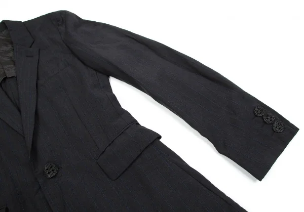 コムデギャルソン オム プリュスCOMME des GARCONS HOMME PLUS 1Bストライプロングジャケット チャコール青S