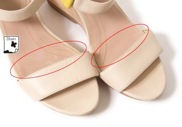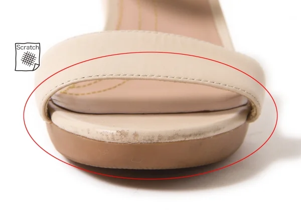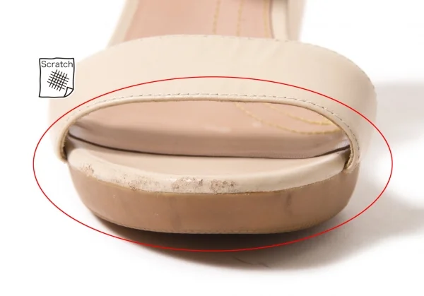 爪先スレ、ヒール小キズ、踵若干減り、インソール汚れがあります(写真参照)。その他に目立った汚れ、ダメージ等なくいい状態です。