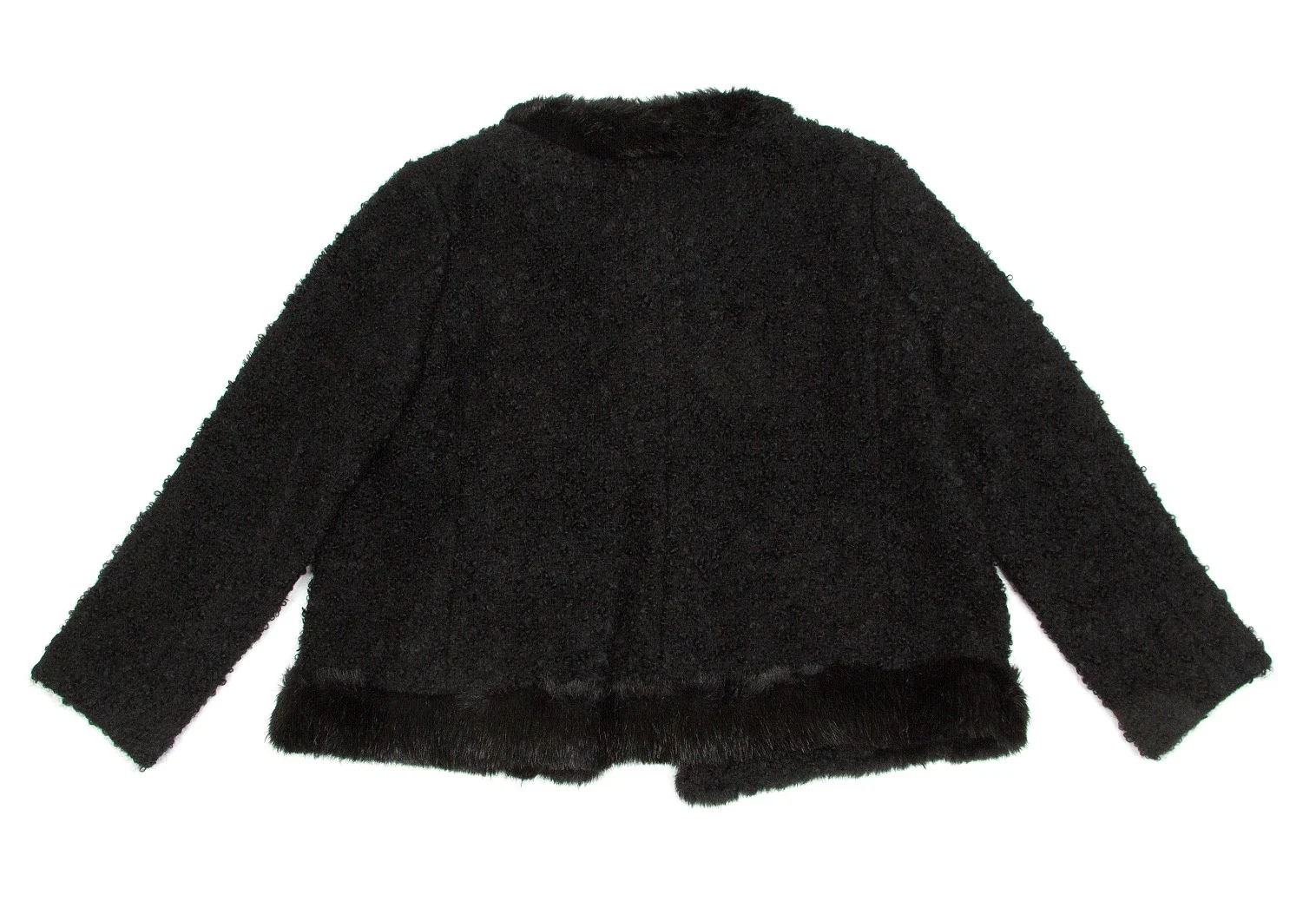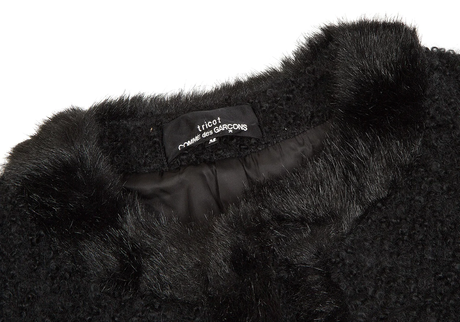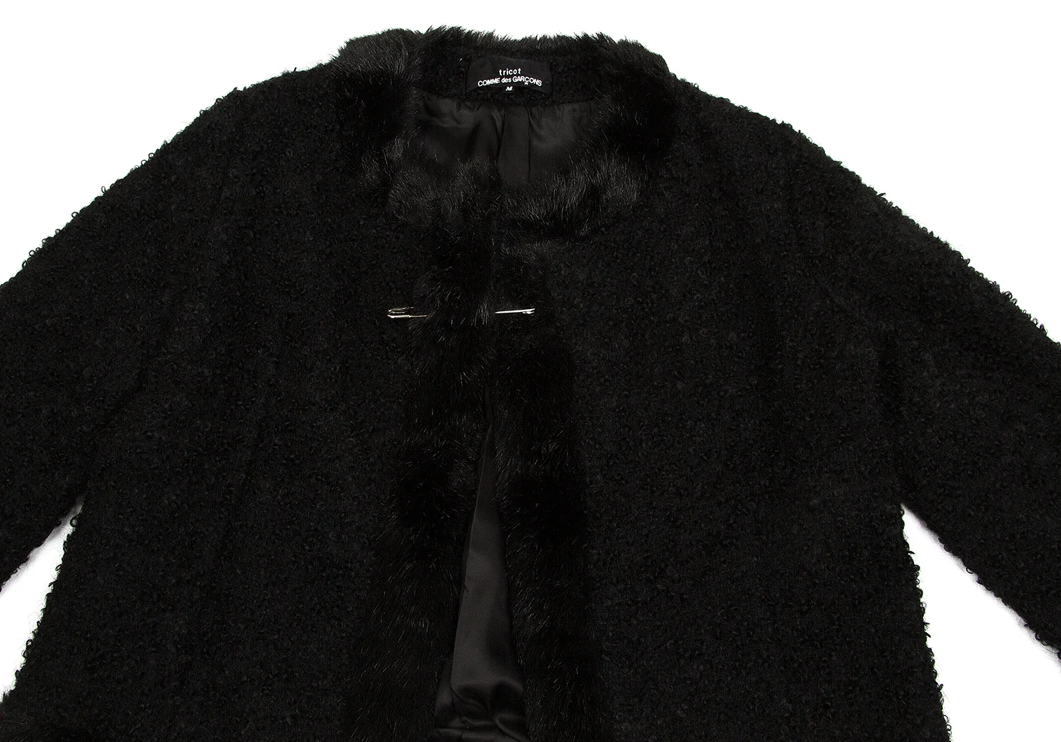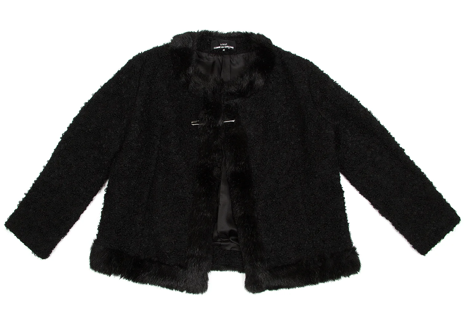 【SALE】トリココムデギャルソンtricot COMME des GARCONSループツイードファートリミングノーカラーピン留めジャケット 黒M