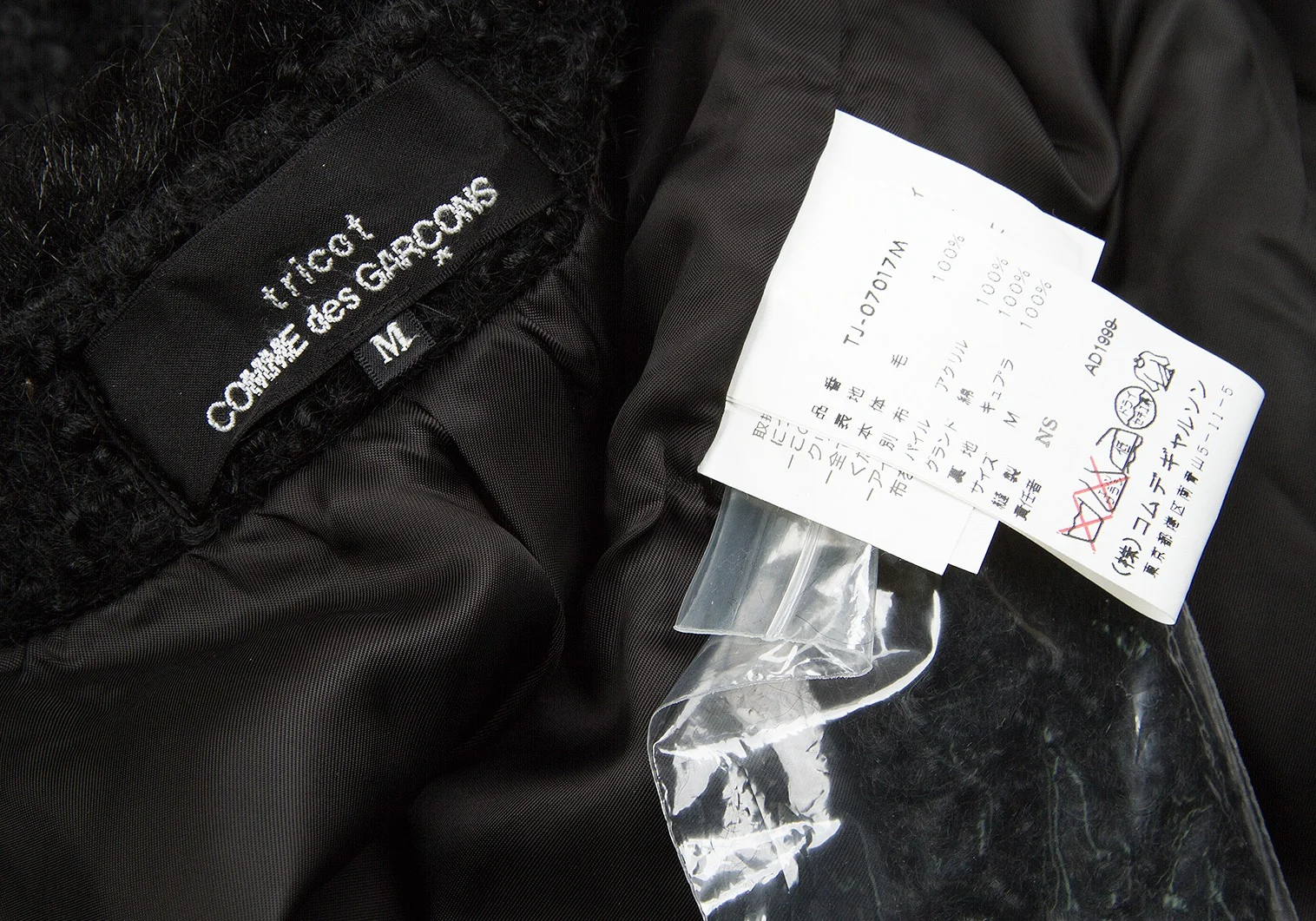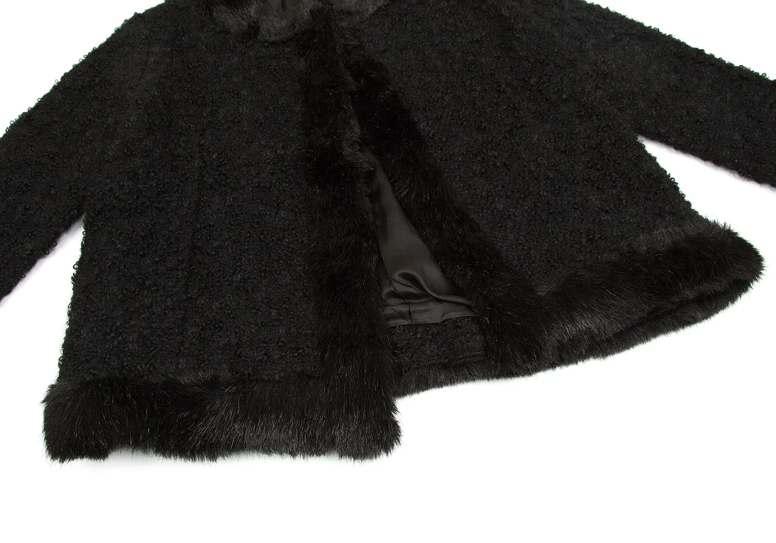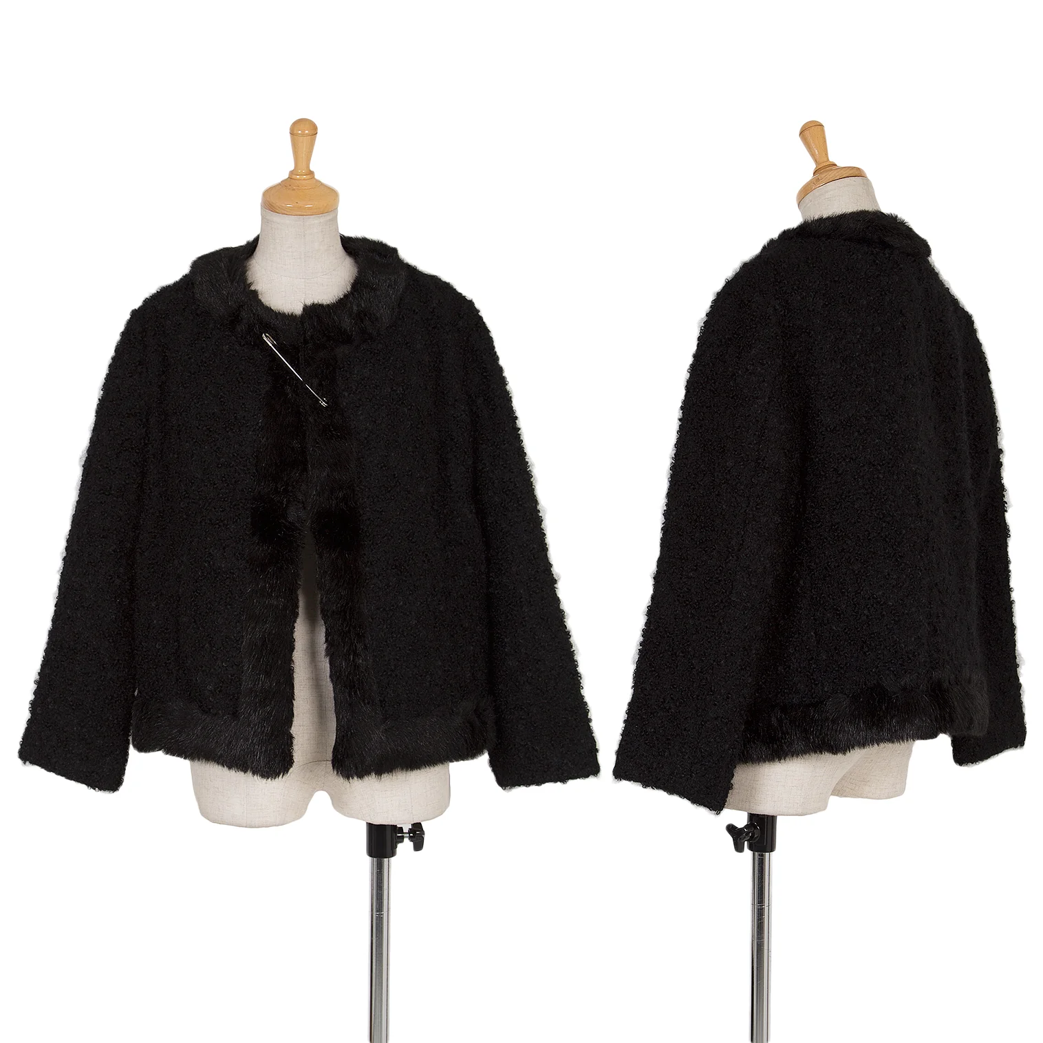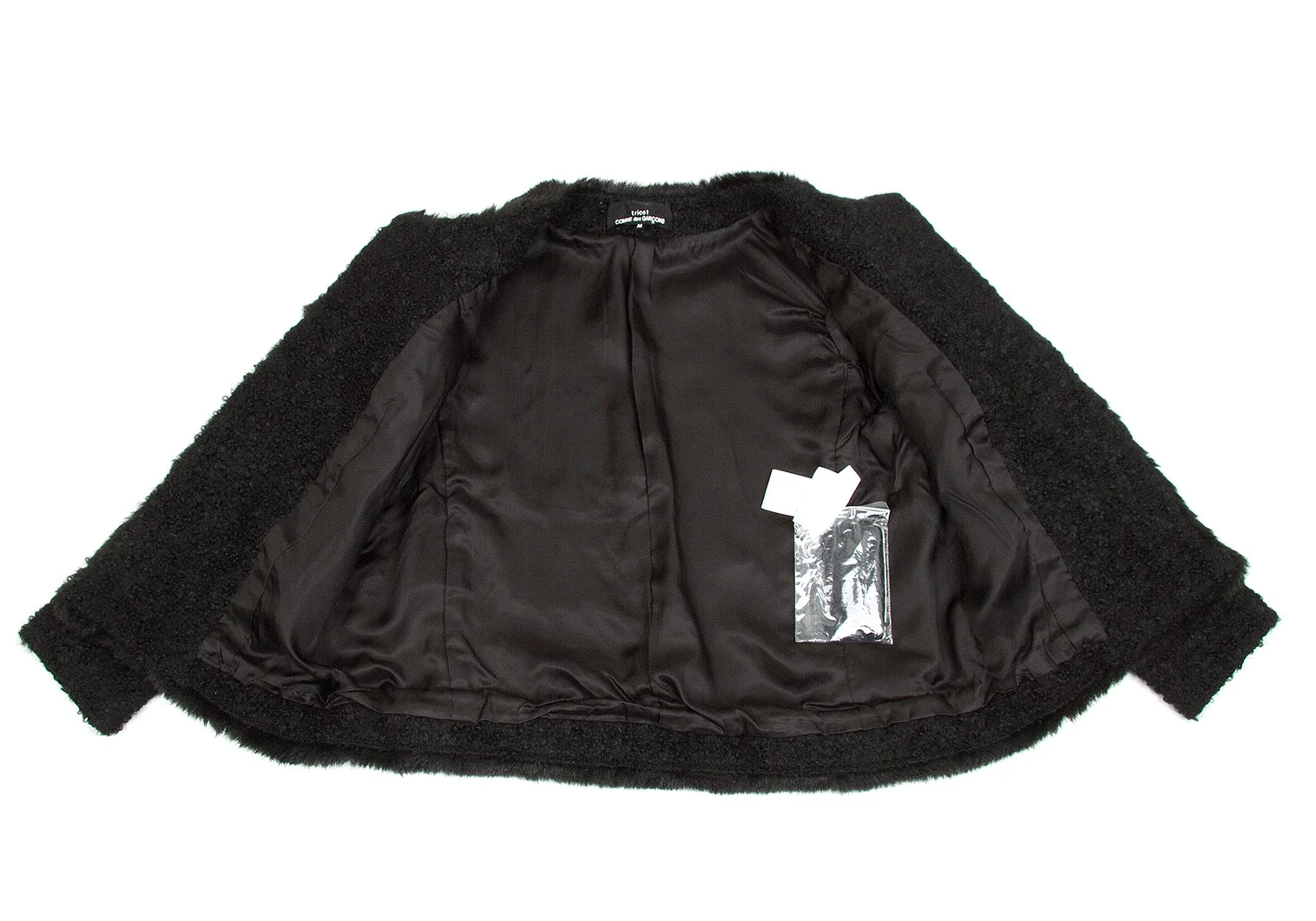 【SALE】トリココムデギャルソンtricot COMME des GARCONSループツイードファートリミングノーカラーピン留めジャケット 黒M