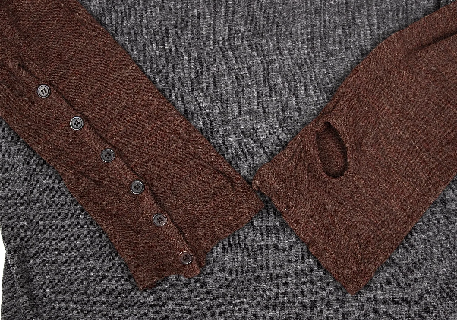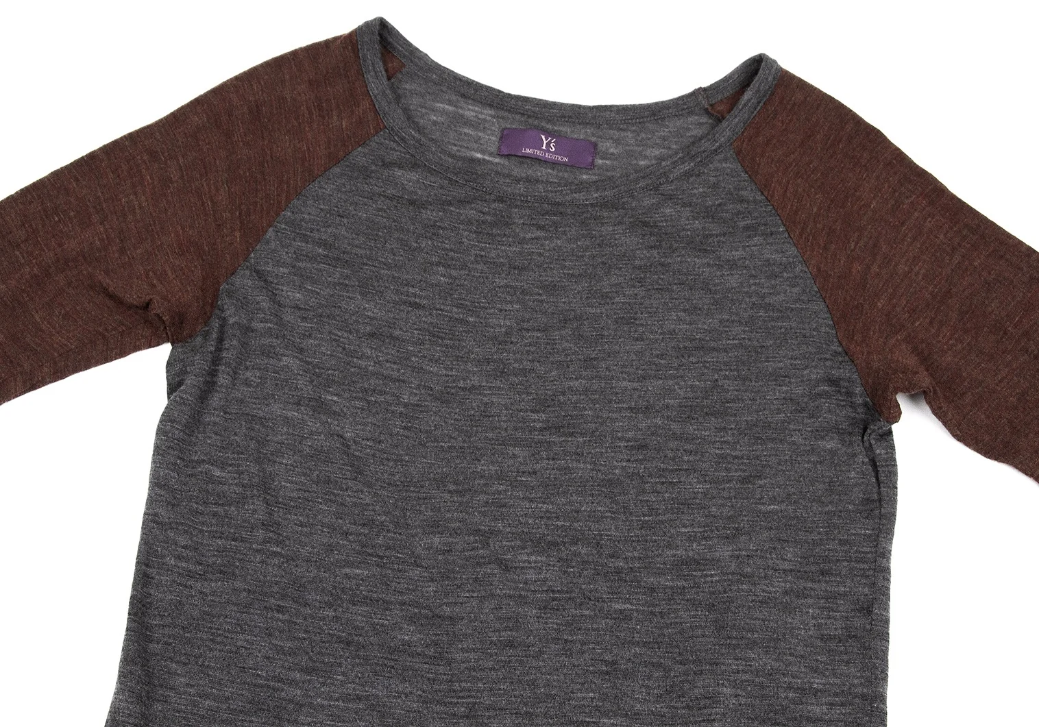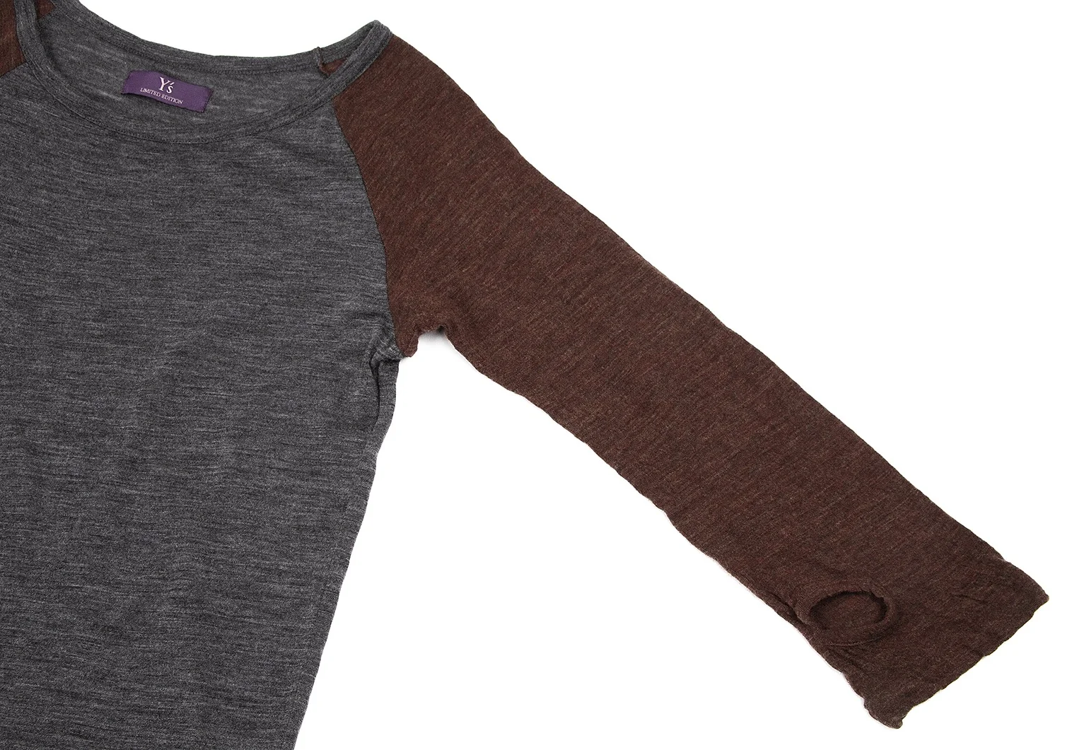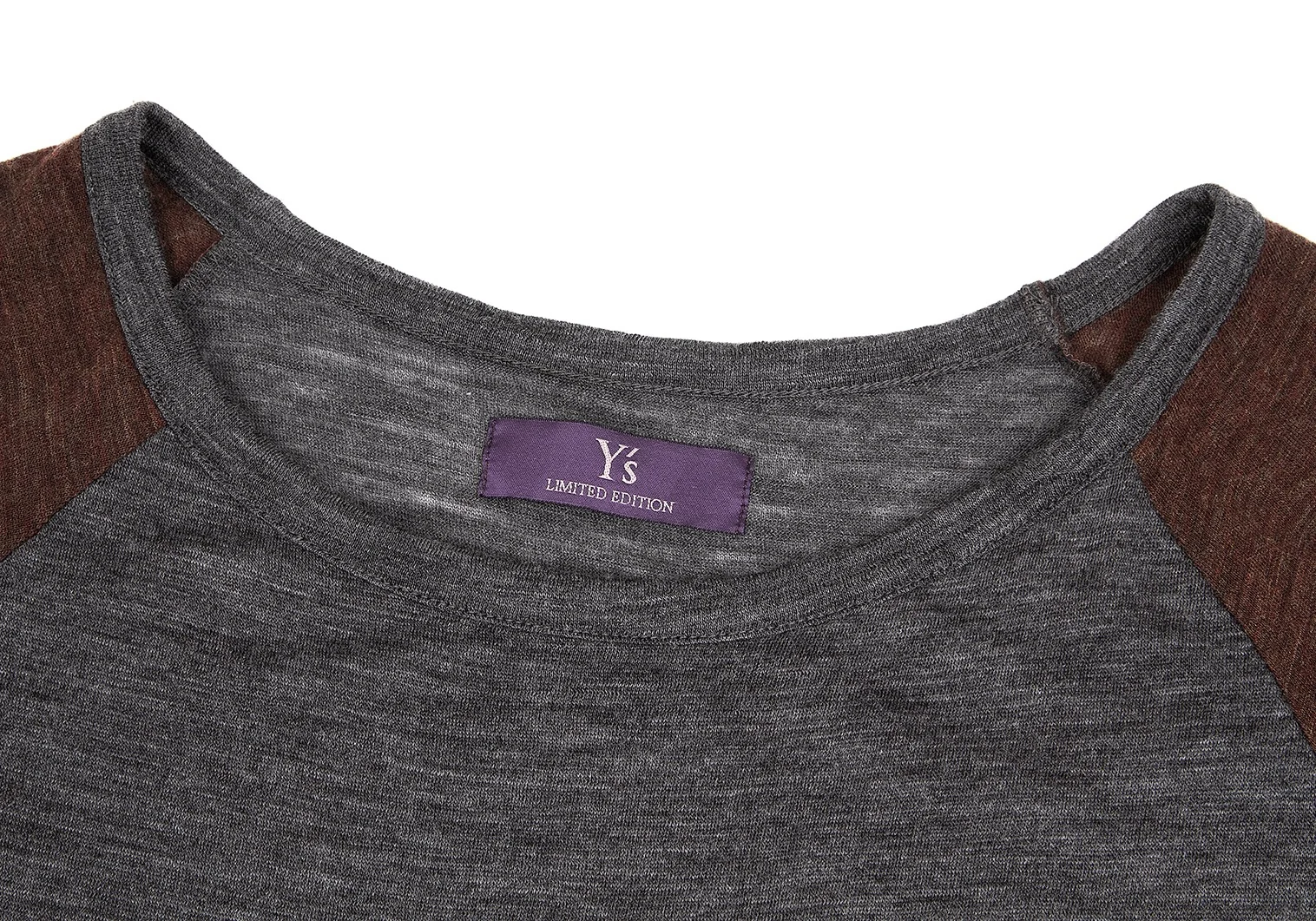 【SALE】ワイズ ピンクY’s PINK ラグラン袖アシンメトリーデザイン切替ウールニットソー 杢グレー茶2