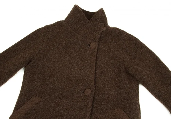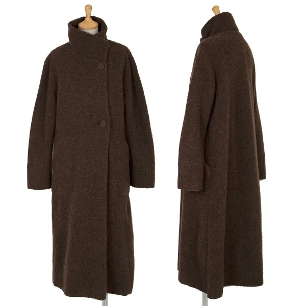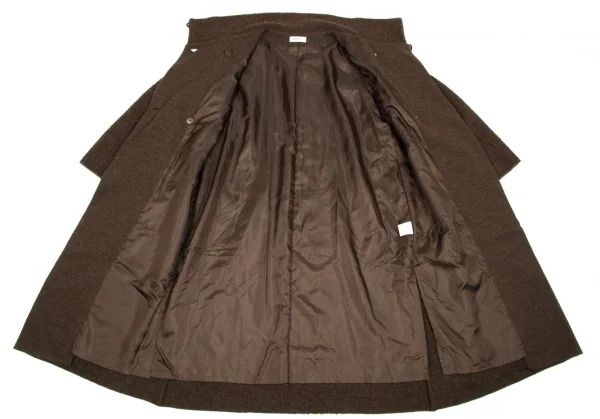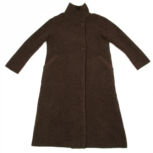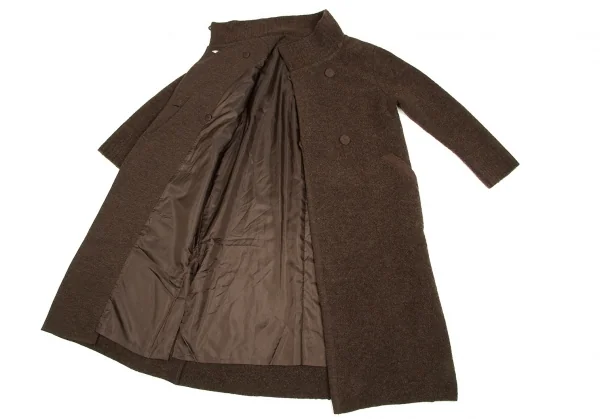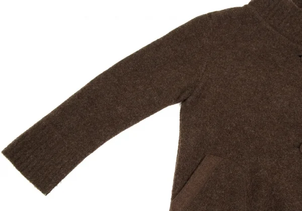 ヒロコビスHIROKO BIS ウールナイロンリブ切替セミダブルコート 茶9