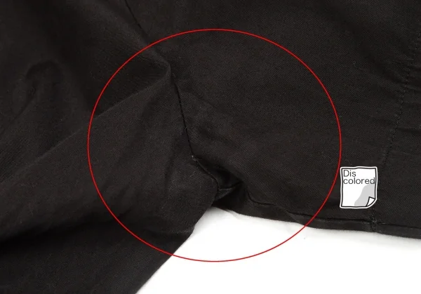品質タグなし、脇下・襟・襟裏に色あせがあります(画像参照)。その他目立ったシミ、汚れ、ほつれ等なくいい状態です。クリーニング済み