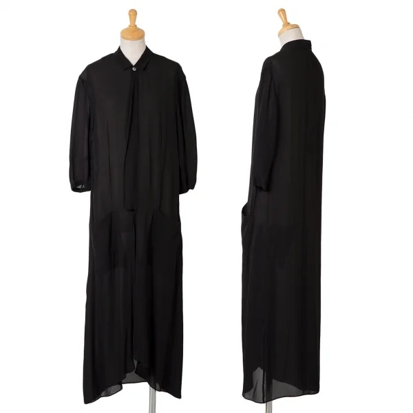 ヨウジヤマモト ノアールYohji Yamamoto NOIR シルクレーヨンシフォンロングブラウス 黒3