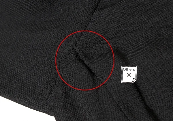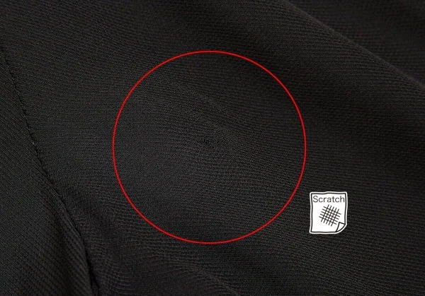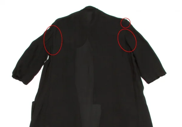 左袖にダメージ、袖・脇の縫い目に広がり、後ろ右肩に引っ掛けがあります(画像参照)。クリーニング済み