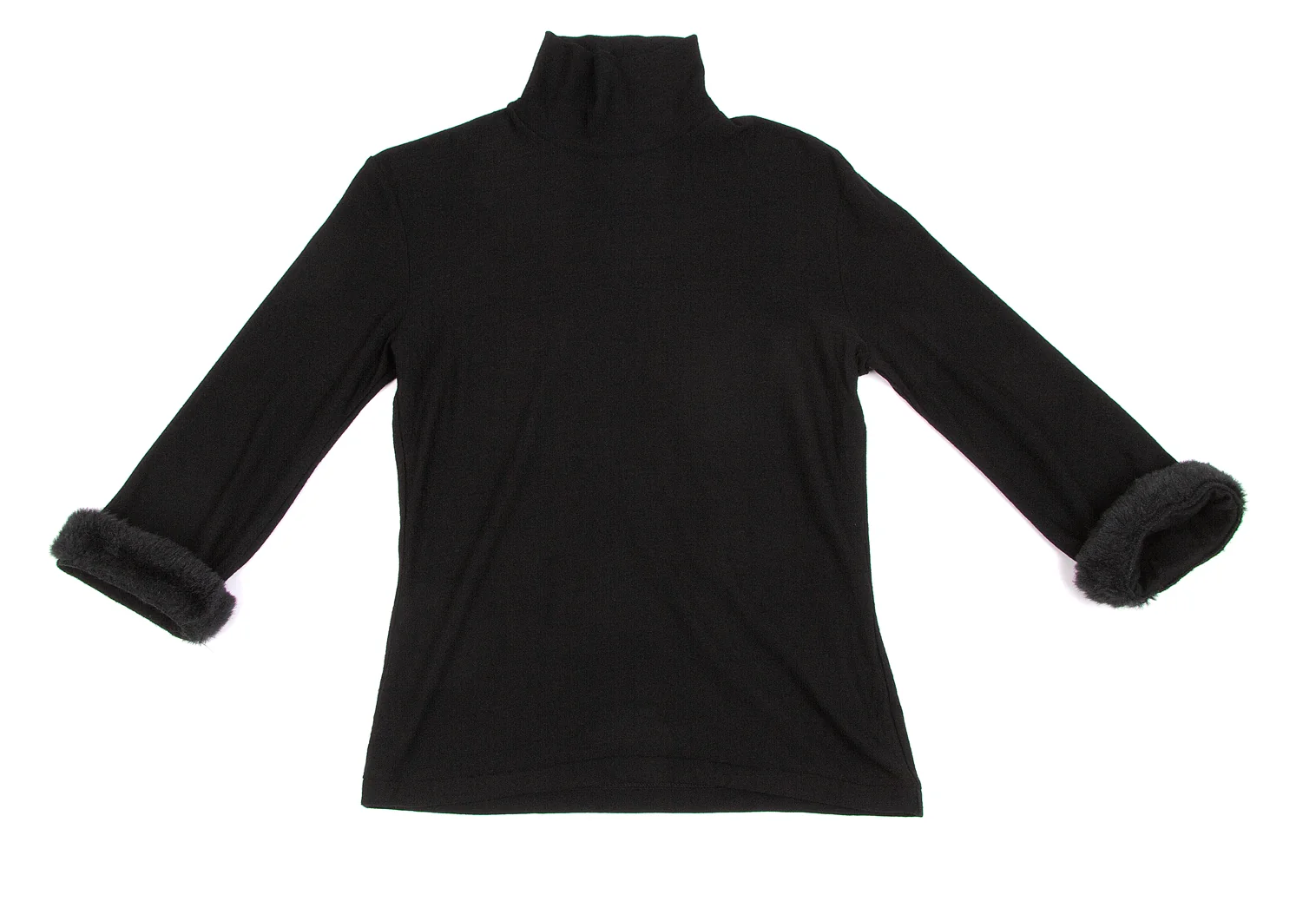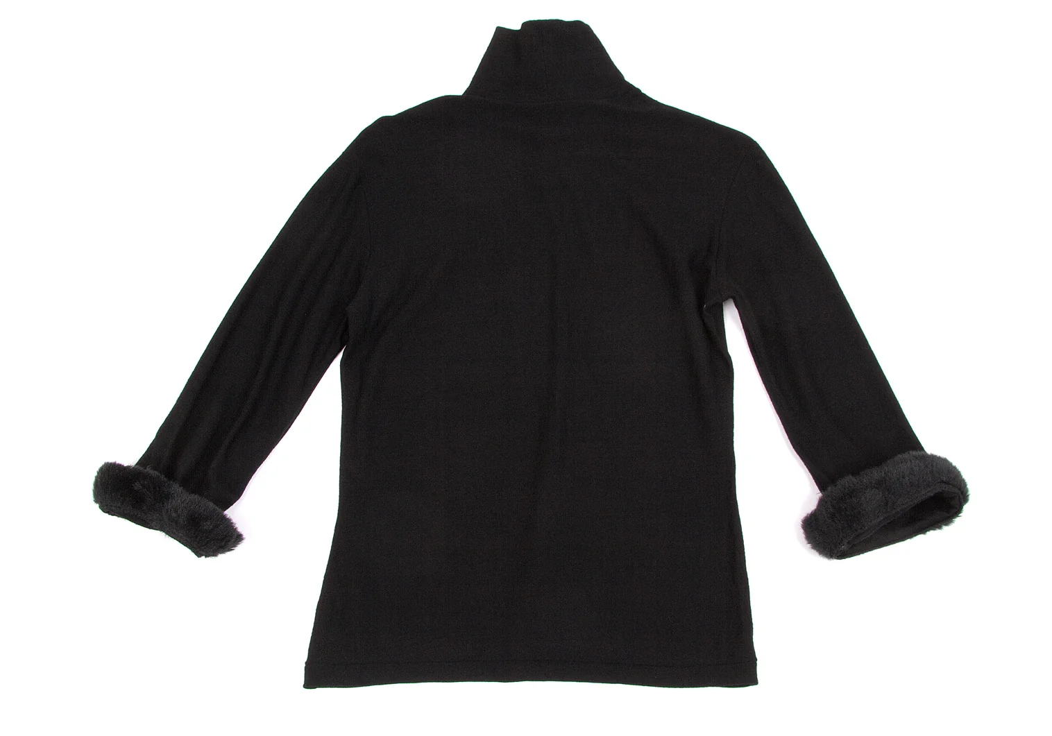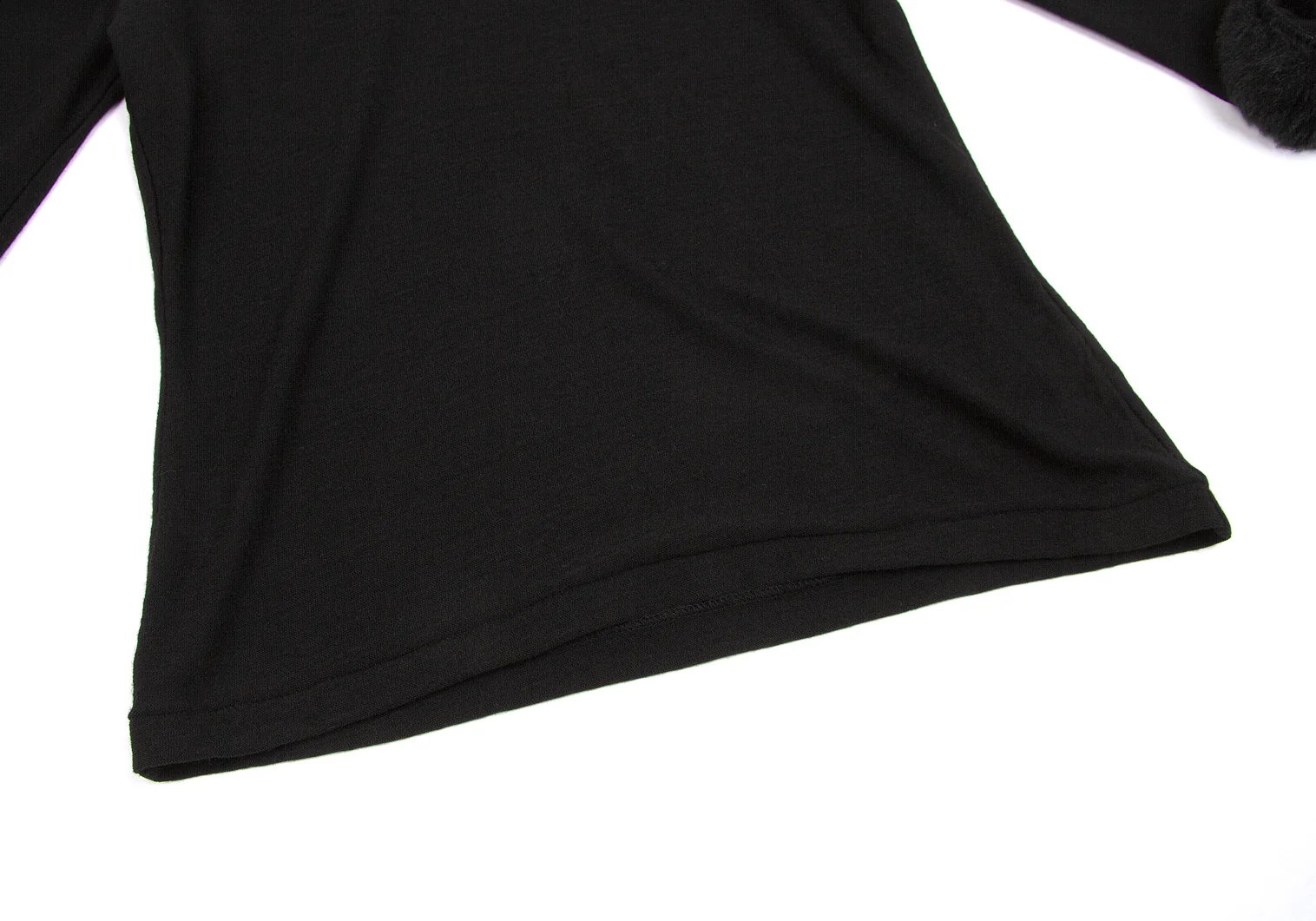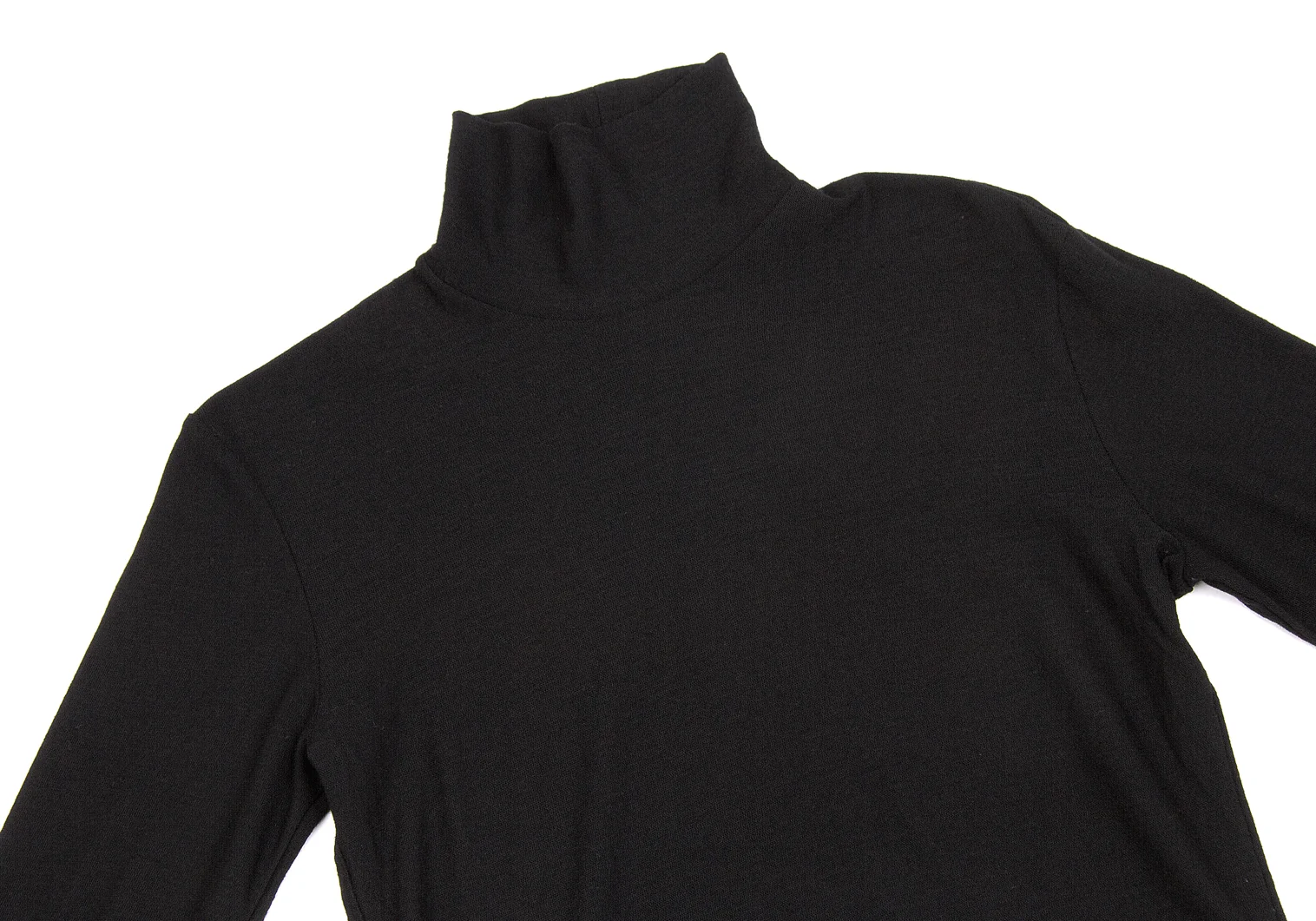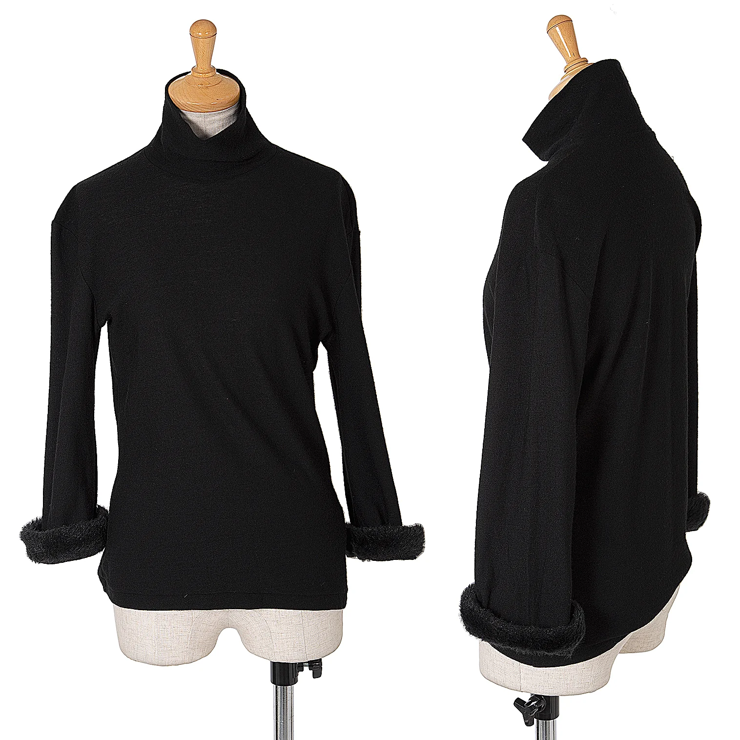 【SALE】ヨウジヤマモト ノアール Yohji Yamamoto NOIR フェイクファーカフタートルネックウールカットソー 黒3