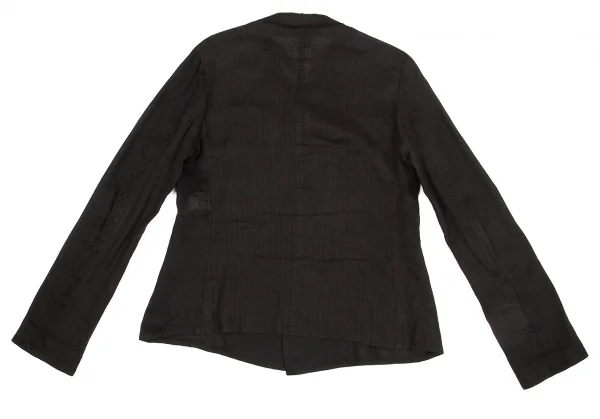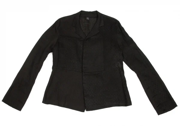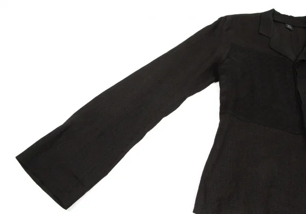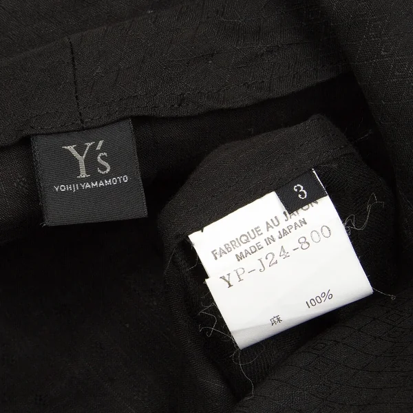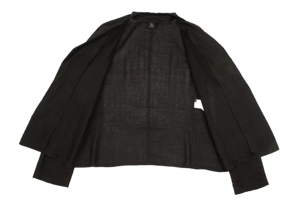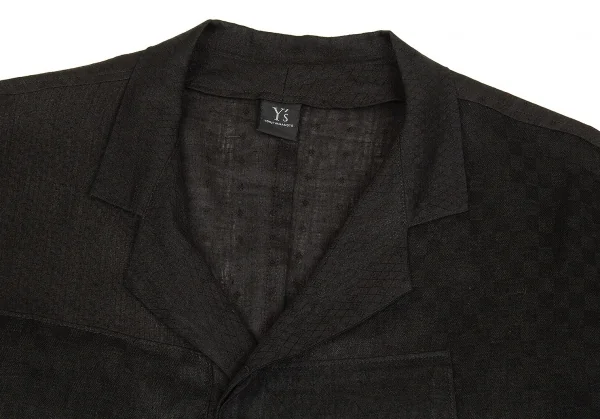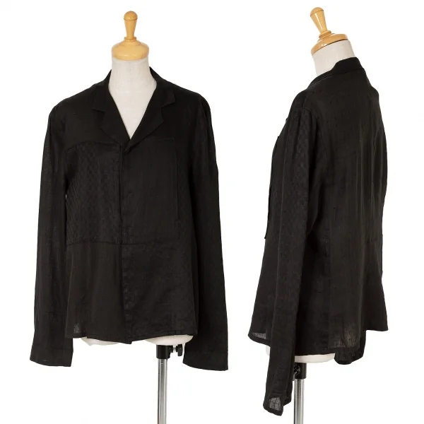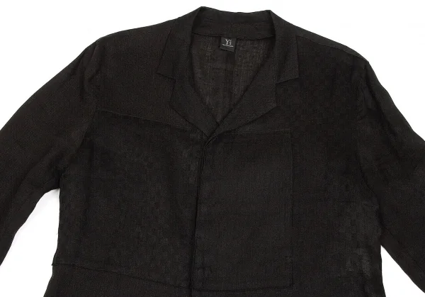 ヨウジヤマモト ノアール Yohji Yamamoto NOIR リネンチェックオープンカラー長袖シャツジャケット 黒3