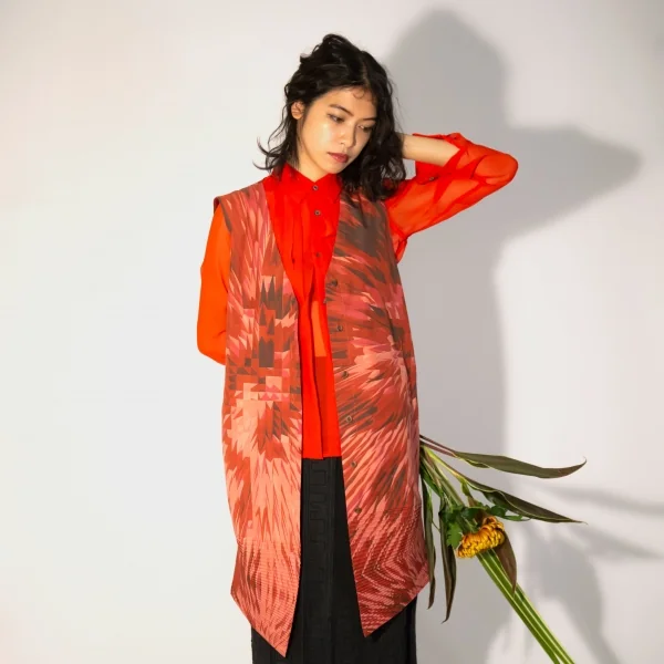 コムデギャルソンCOMME des GARCONS シフォンフリルシャツ 朱赤SS