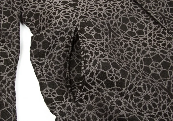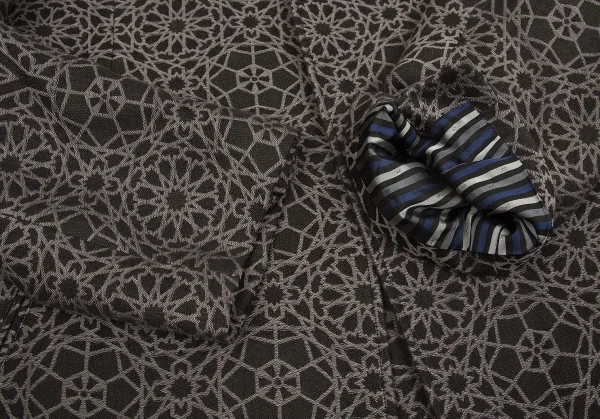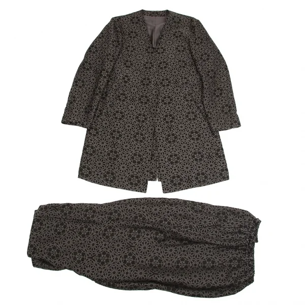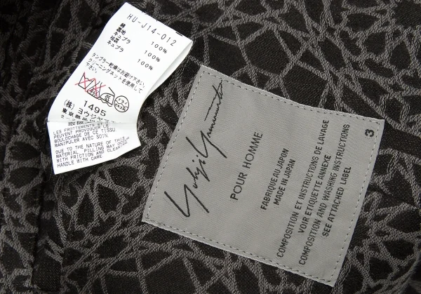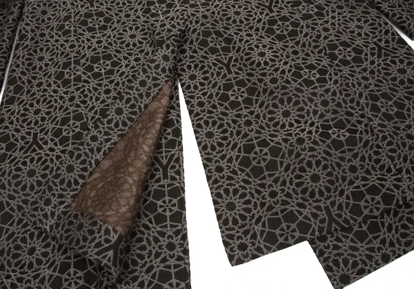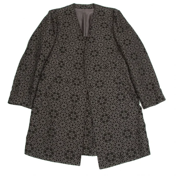 ヨウジヤマモト プールオムYohji Yamamoto POUR HOMME ボタンレスYタイル柄刺繍コットンロングジャケット チャコール3