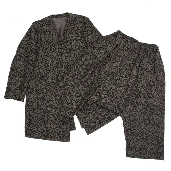 ヨウジヤマモト プールオムYohji Yamamoto POUR HOMME Yタイル柄刺繍3点セットアップスーツ チャコール 茶3・2