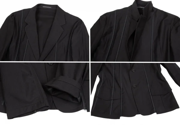 ヨウジヤマモト プールオムYohji Yamamoto POUR HOMME パイピング切替コットンセットアップスーツ 黒3・2