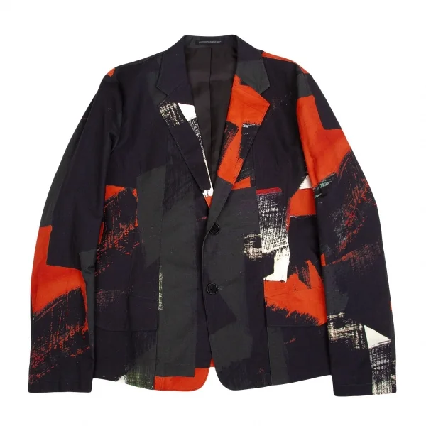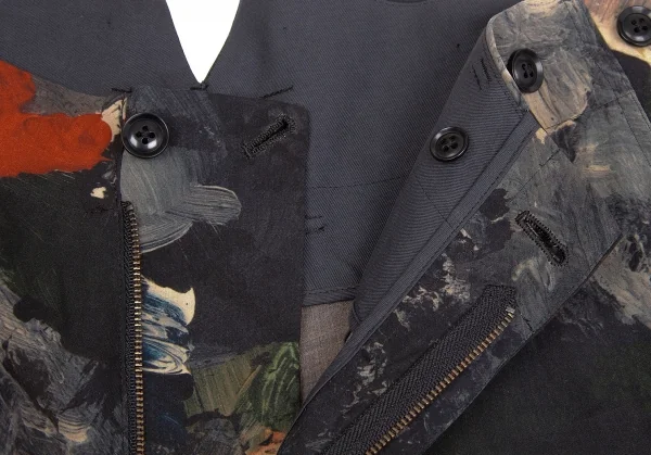 ヨウジヤマモト プールオムYohji Yamamoto POUR HOMME 朝倉優佳ペイントセットアップスーツ 黒マルチ3・2