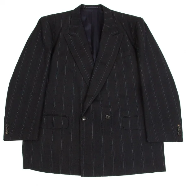 コムデギャルソン オムCOMME des GARCONS HOMME ウールピンストライプダブルジャケット 紺M
