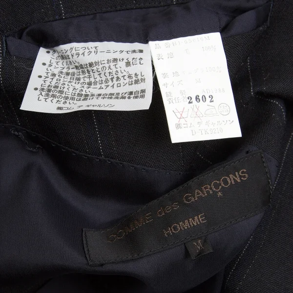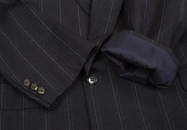 コムデギャルソン オムCOMME des GARCONS HOMME ウールピンストライプダブルセットアップスーツ 紺M