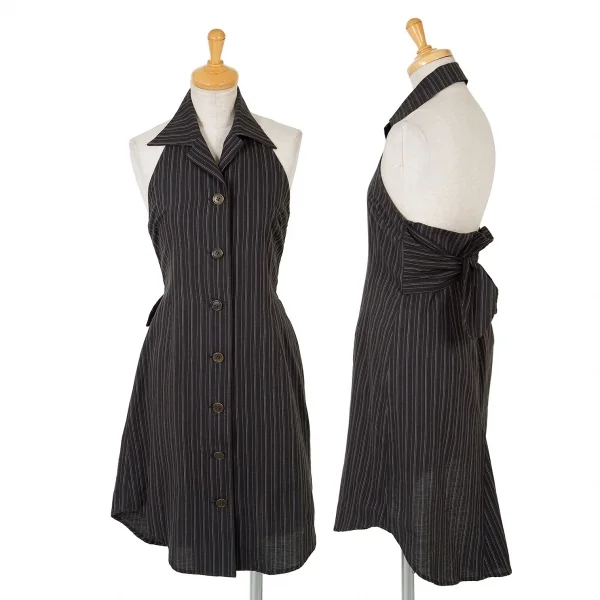 ジジリgigli ストライプホルターネックワンピース チャコールM