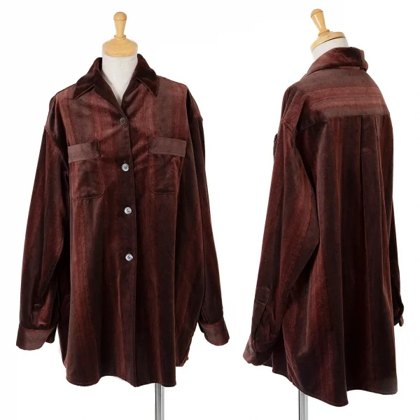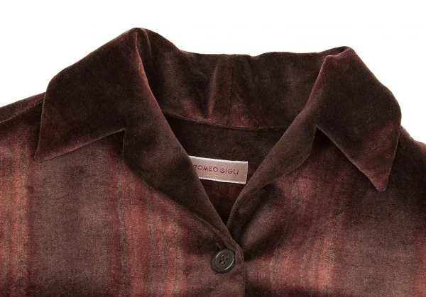 【SALE】ロメオジリROMEO GIGLI ストライプベロアビッグシルエットシャツジャケット 茶9T