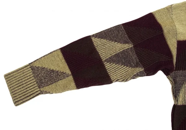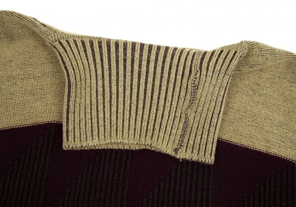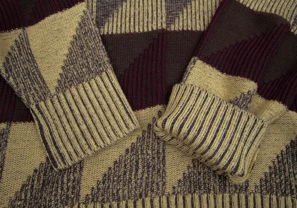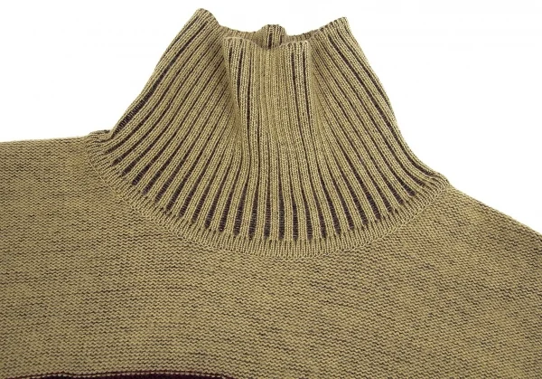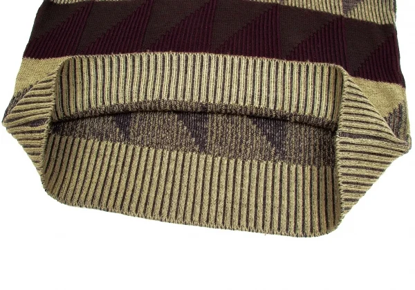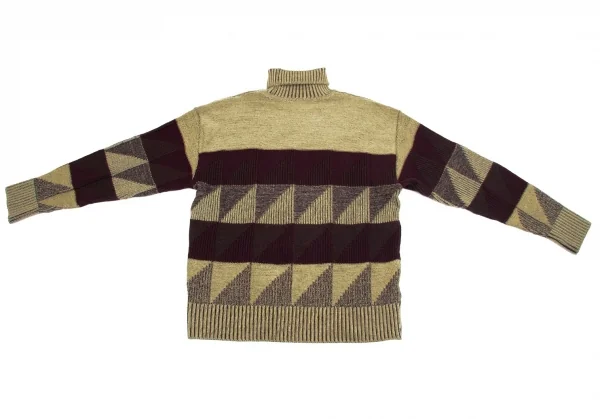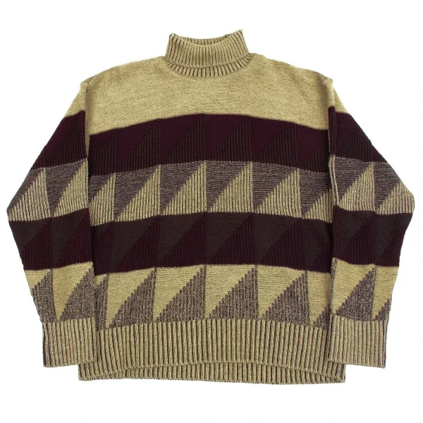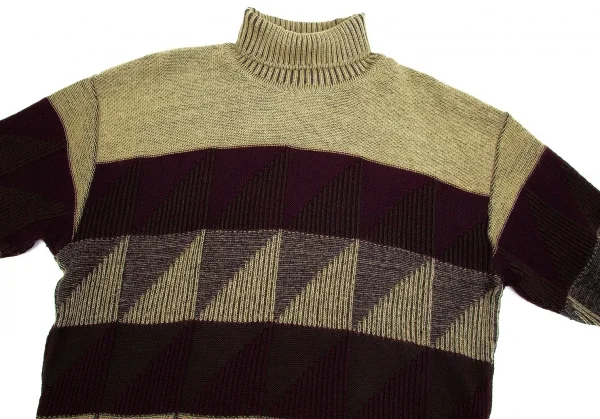 イッセイミヤケメンISSEY MIYAKEMEN コットンウールマルチパターンタートルネックニット カラシボルドー他 からしボルドー他M