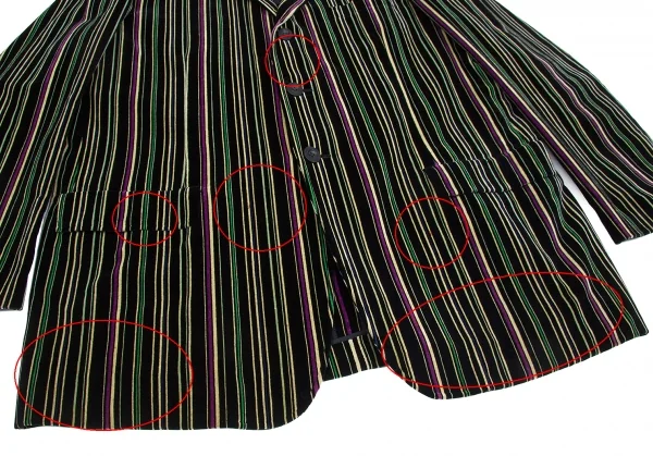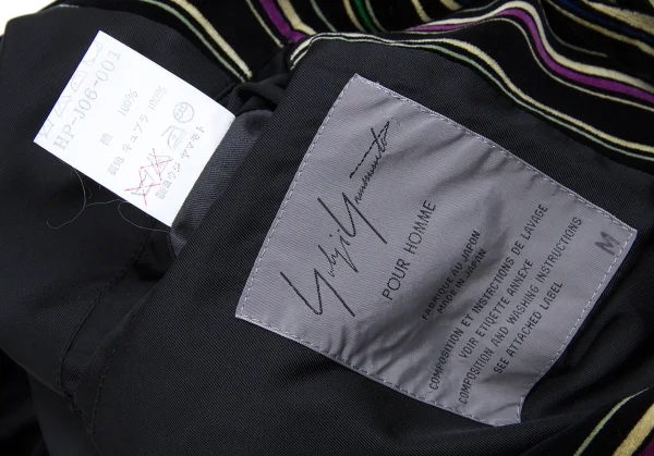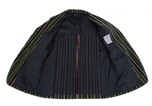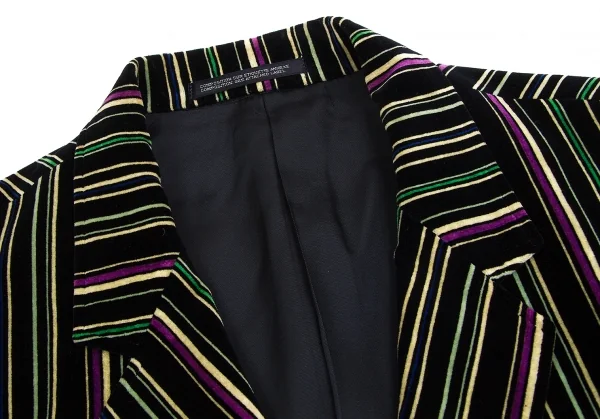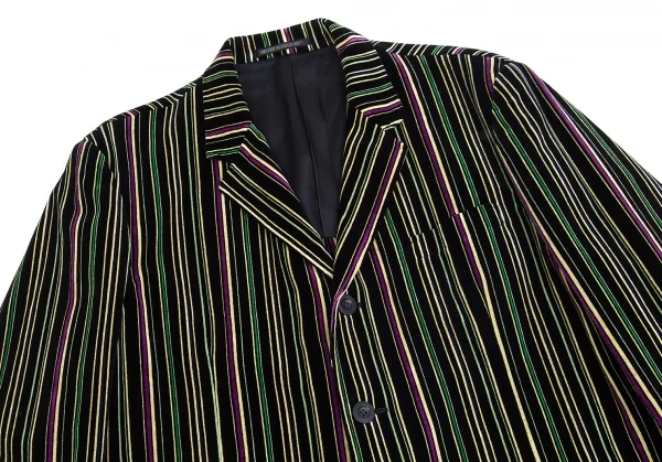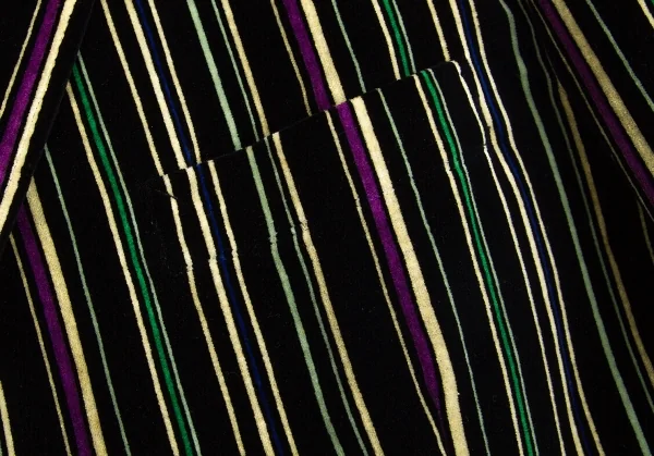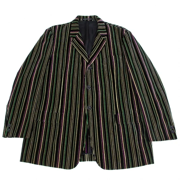 【最終値下げ】ヨウジヤマモト プールオムYohji Yamamoto POUR HOMMEマルチカラーストライプベロアジャケット 黒黄緑紫M