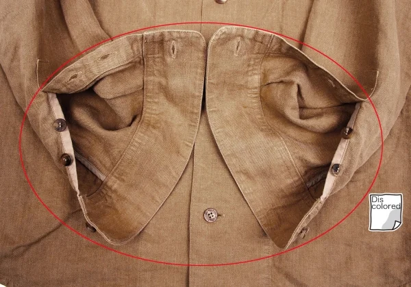 全体的に毛羽立ち・色あせがあり、襟裏に薄汚れ、袖裏に色あせがあります(画像参照)。その他に目立ったダメージ等はございません。クリーニング済み