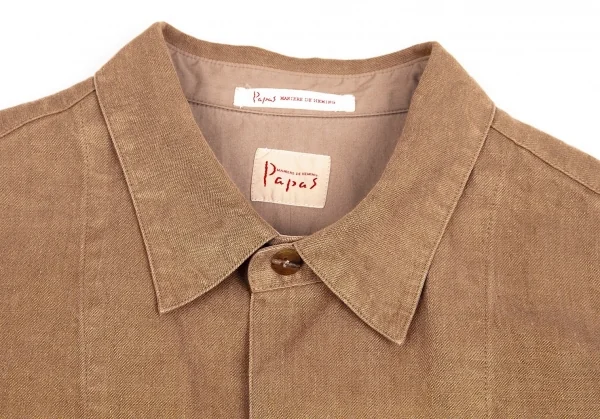 【SALE】パパスPapas フェイクレイヤードリネンシャツジャケット ベージュM