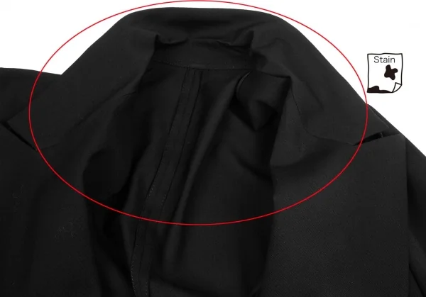 襟裏、袖裏に薄汚れ、ラペルに生地浮きがございます(画像参照)。その他に目立ったシミ、スレ、ほつれ等はございません。クリーニング済み