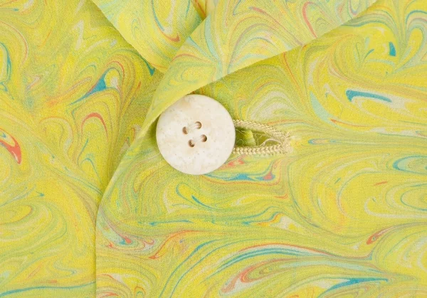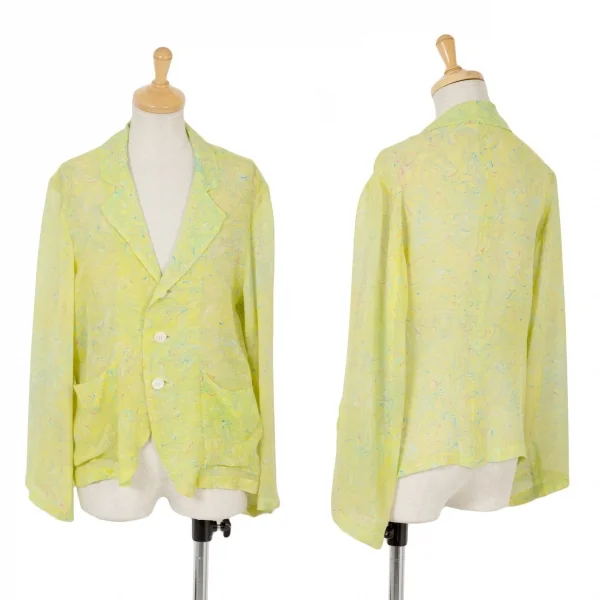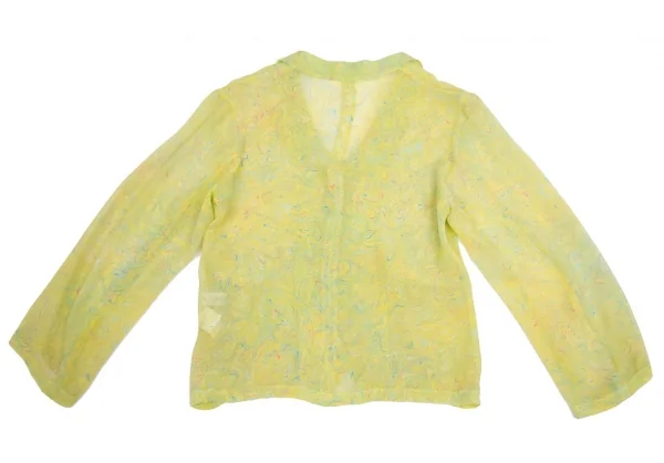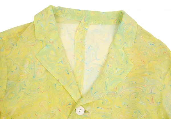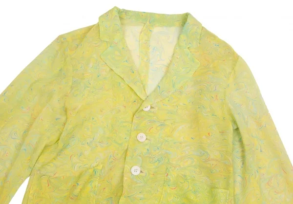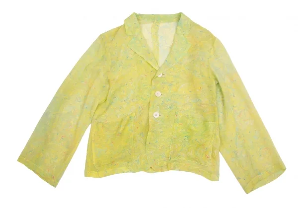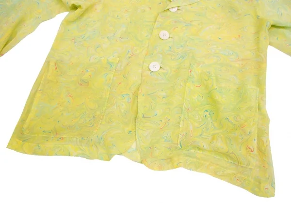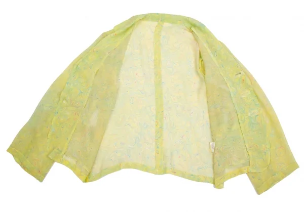 【SALE】ヨウジヤマモト ファムYohji Yamamoto FEMME シルクシフォンマーブルプリントジャケット 黄緑マルチS
