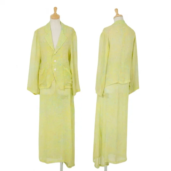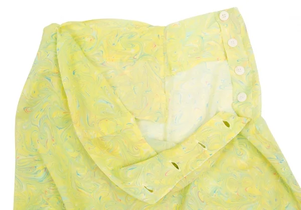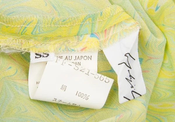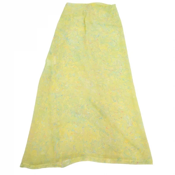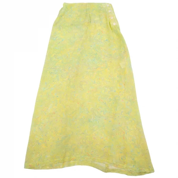 【SALE】ヨウジヤマモト ファムYohji Yamamoto FEMME シルクシフォンマーブルプリントスカート 黄緑マルチSS
