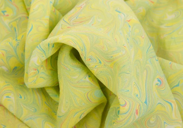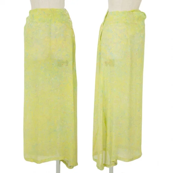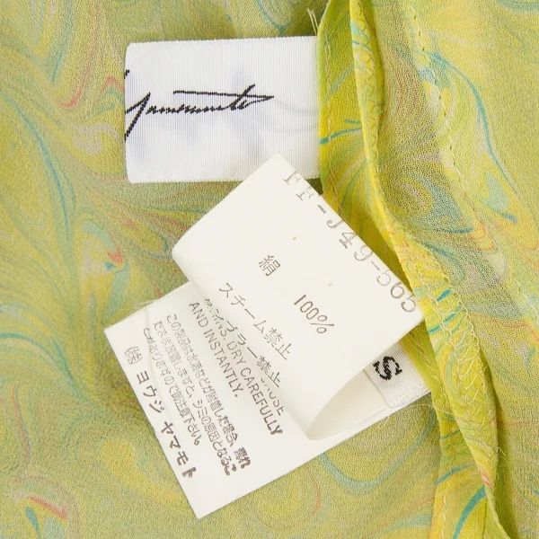 【SALE】ヨウジヤマモト ファムYohji Yamamoto FEMME シルクシフォンマーブルプリントセットアップ 黄緑マルチS/SS