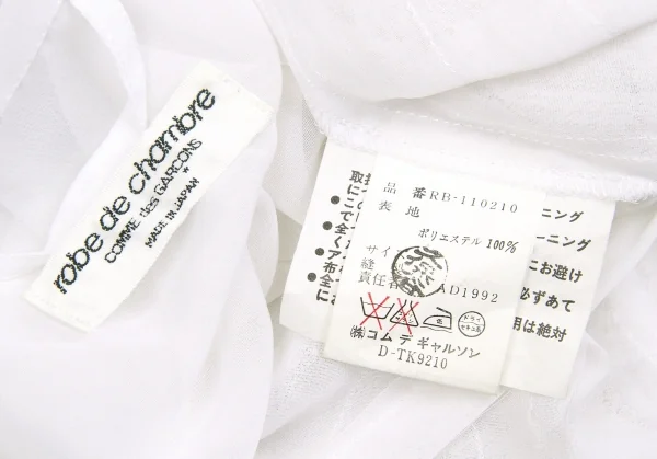 【SALE】ローブドシャンブル コムデギャルソンrobe de chambre COMME des GARCONS シフォンテープ叩き付けデザインタンクトップ 白M位