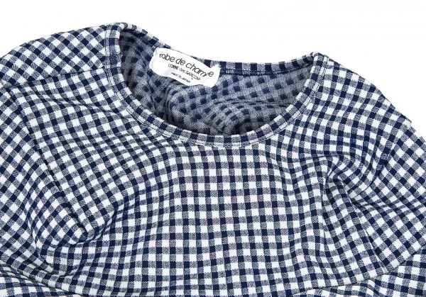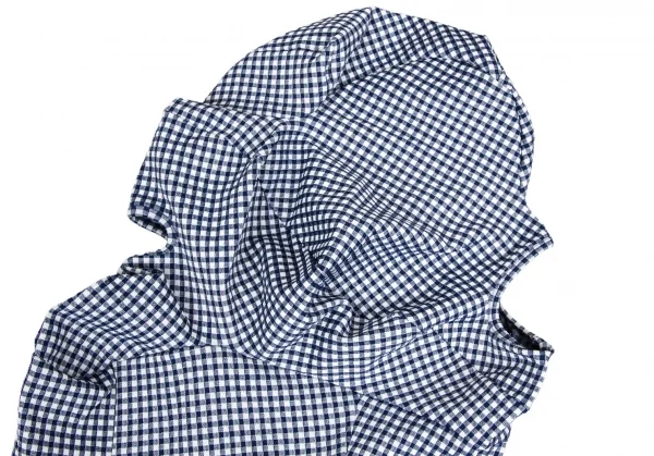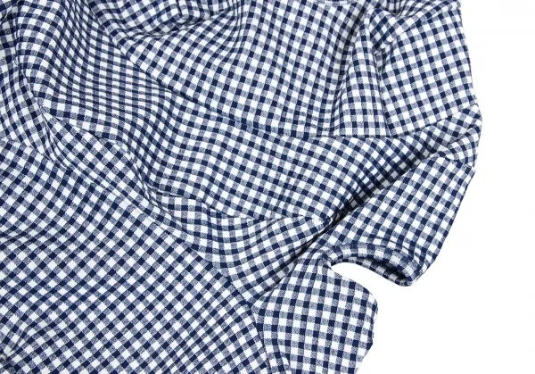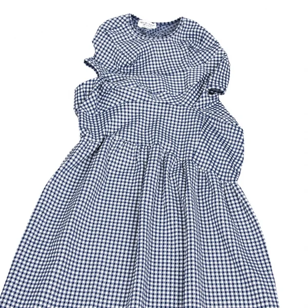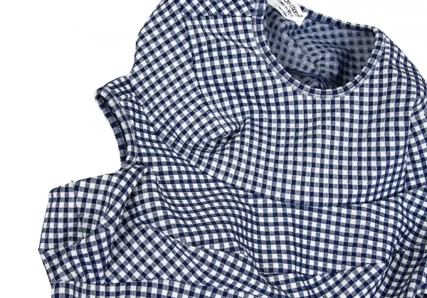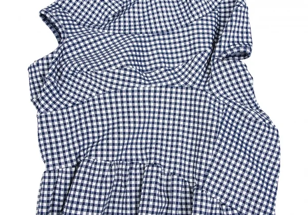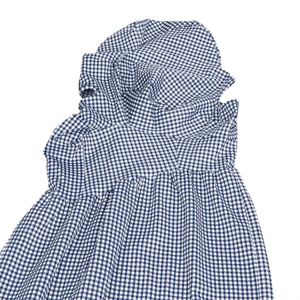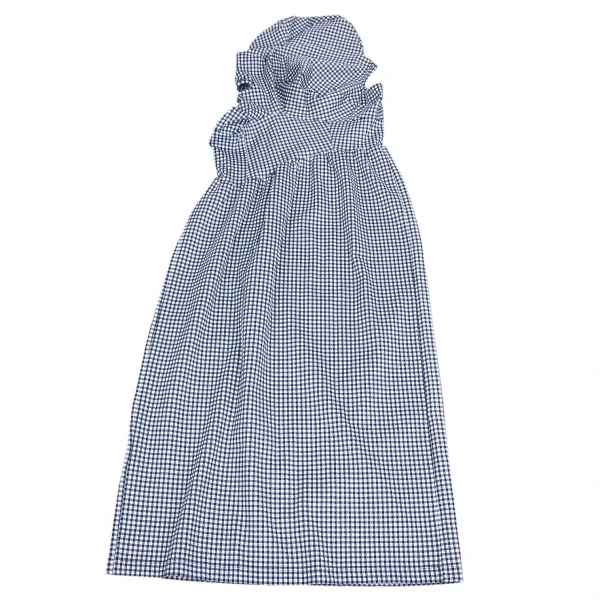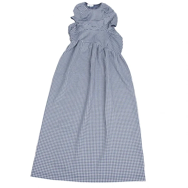 ローブドシャンブル コムデギャルソンrobe de chambre COMME des GARCONS ストレッチギンガムチェック切替デザインノースリーブワンピース 紺白M位
