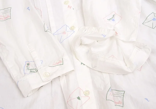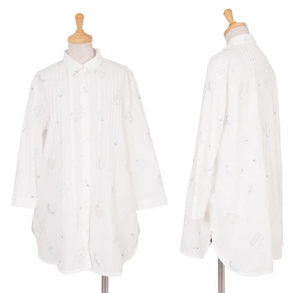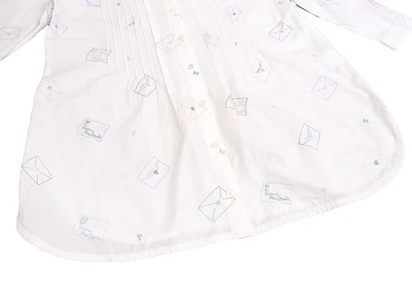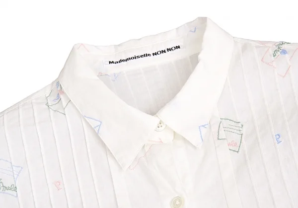 マドモアゼルノンノンMademoiselle NON NON レター刺繍ピンタックシャツ 白マルチM位