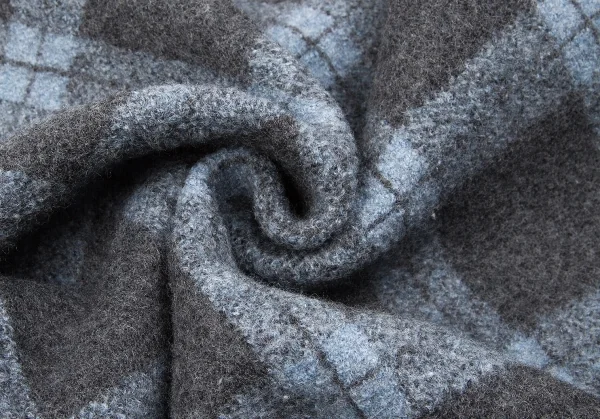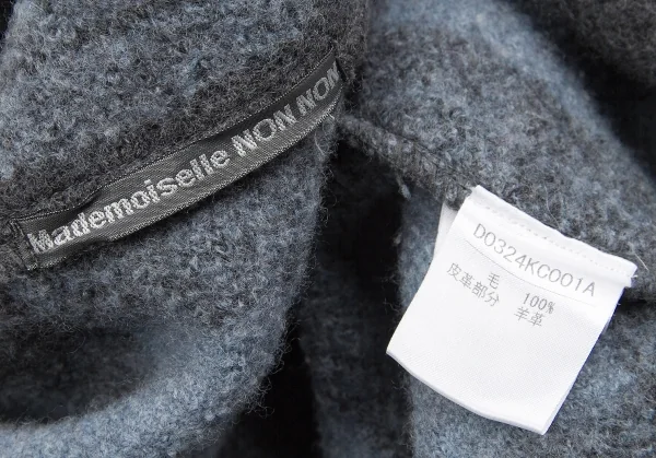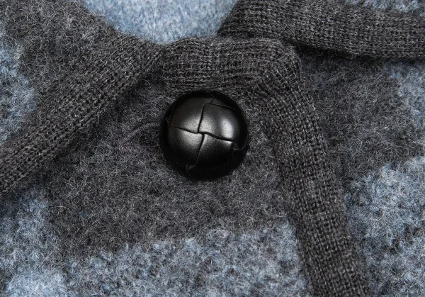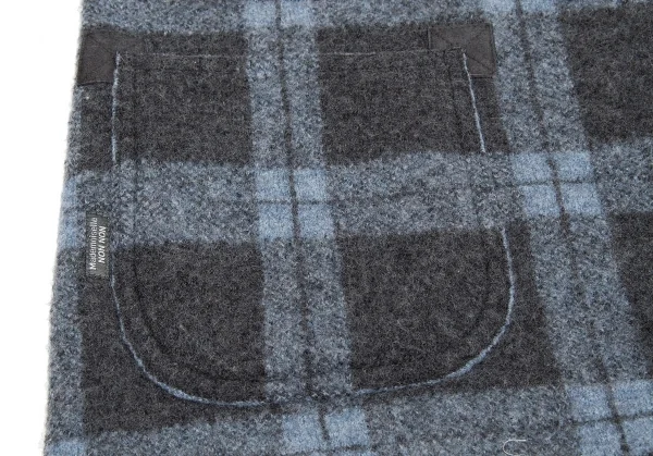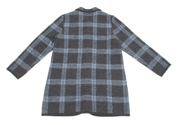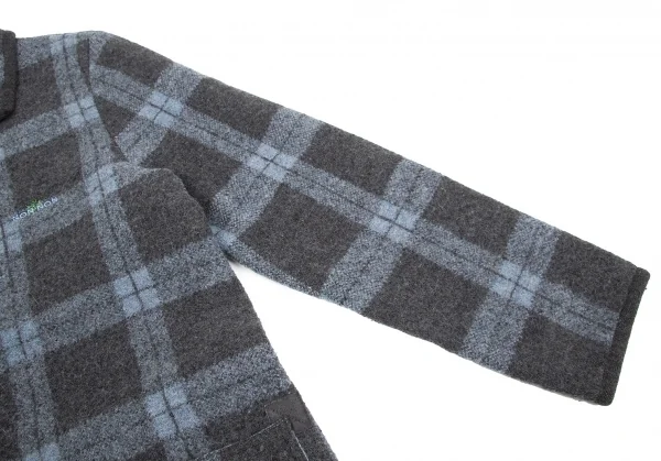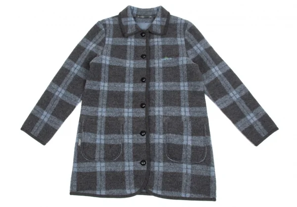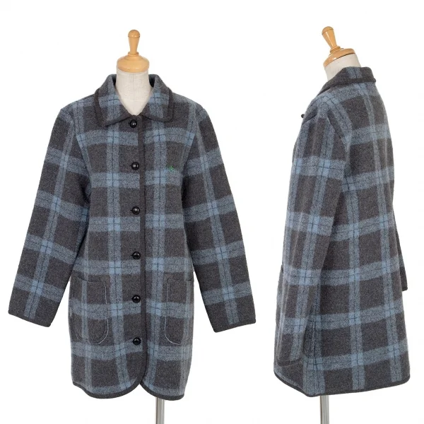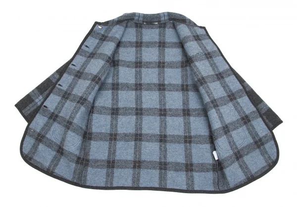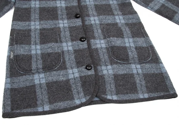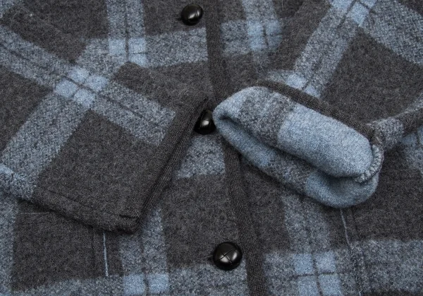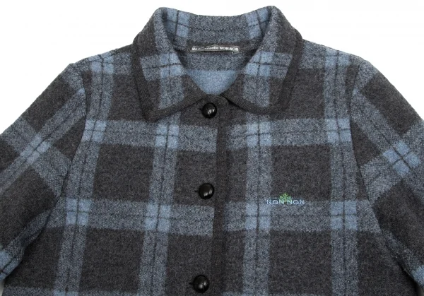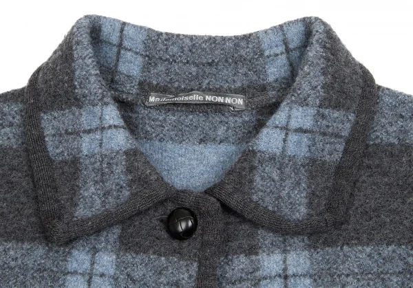マドモアゼルノンノンMademoiselle NON NON 圧縮ウールチェックパイピングジャケット グレーブルーM位