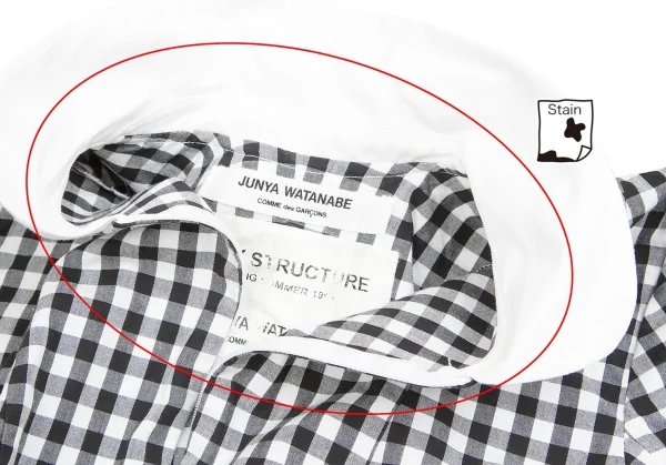 品質表示タグの裏側に書き込みあり、首回りに汚れ、首裏タグに汚れ・色あせがあります(画像参照)。クリーニング済み