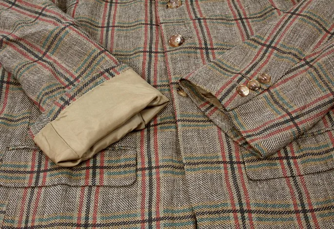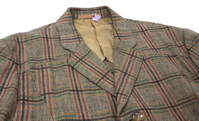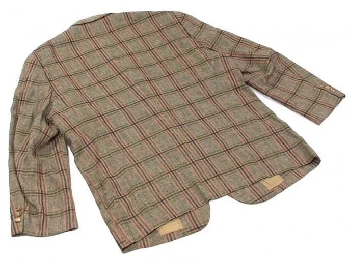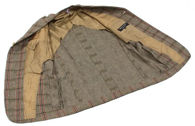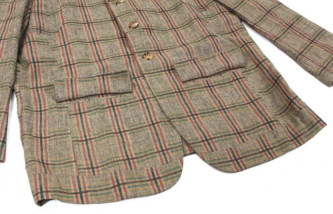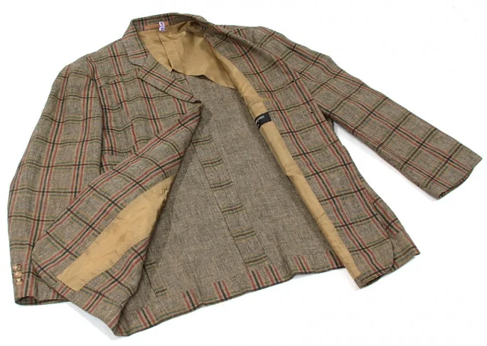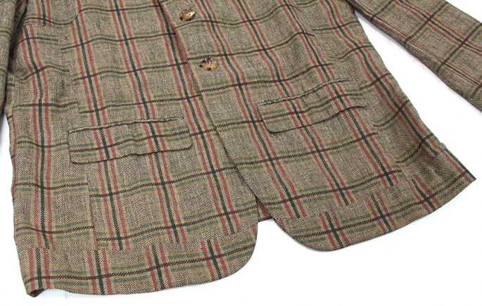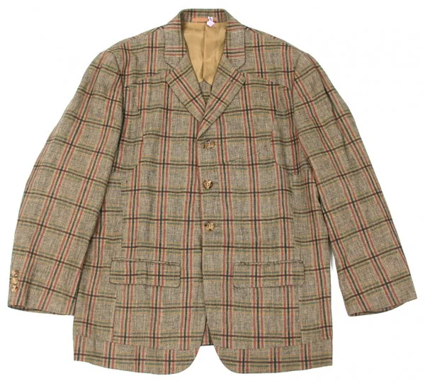 コムデギャルソン オムプリュス COMME des GARCONS HOMME PLUS 麻レーヨンチェックペイントジャケット カーキS